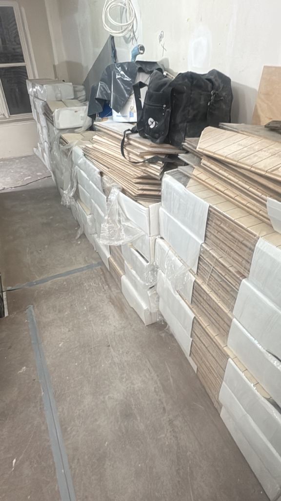 Circa 40-43m2 of chevron timber flooring