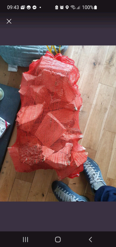 25kg net bags of the finest wood you could wish to burn . Vintage oak whisky barrel staves and lids cut to 30cm or 12inches to fit in any stove or fire 🔥. High energy , dense wood 100% sustainable . Also heavy well seasoned logs which burn long and hot. I use a mix with great results .Collection bearsden G61 . Or min x10 delivery £10 charge .