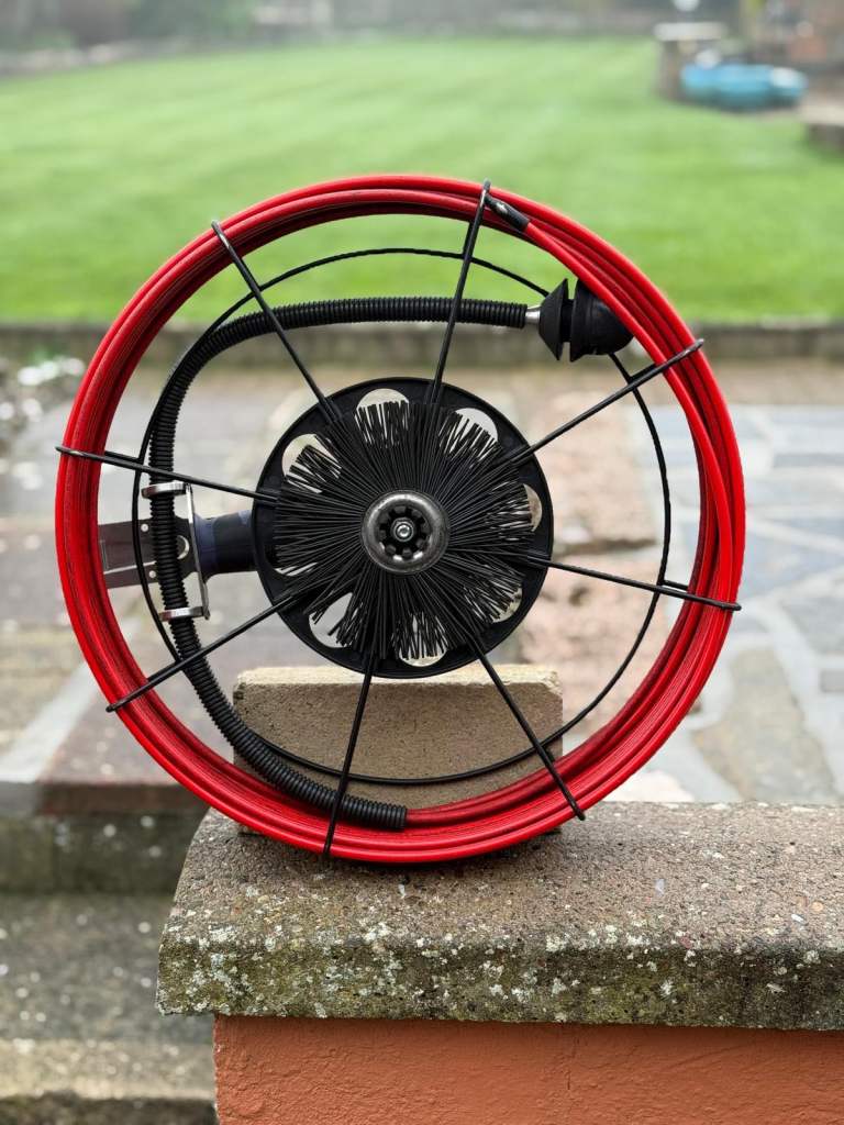 Viper Kit. Flexible reel with brush attached for cleaning chimney. Reel will reach approx 11 to 12 metres. Separate Karcher soot collecting bin included. Both items as new.