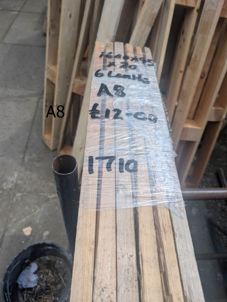 I have 6 lengths of de-nailed reclaimed wooden pallet lathe lengths that measure 1600mm x 95mm x 20mm.
