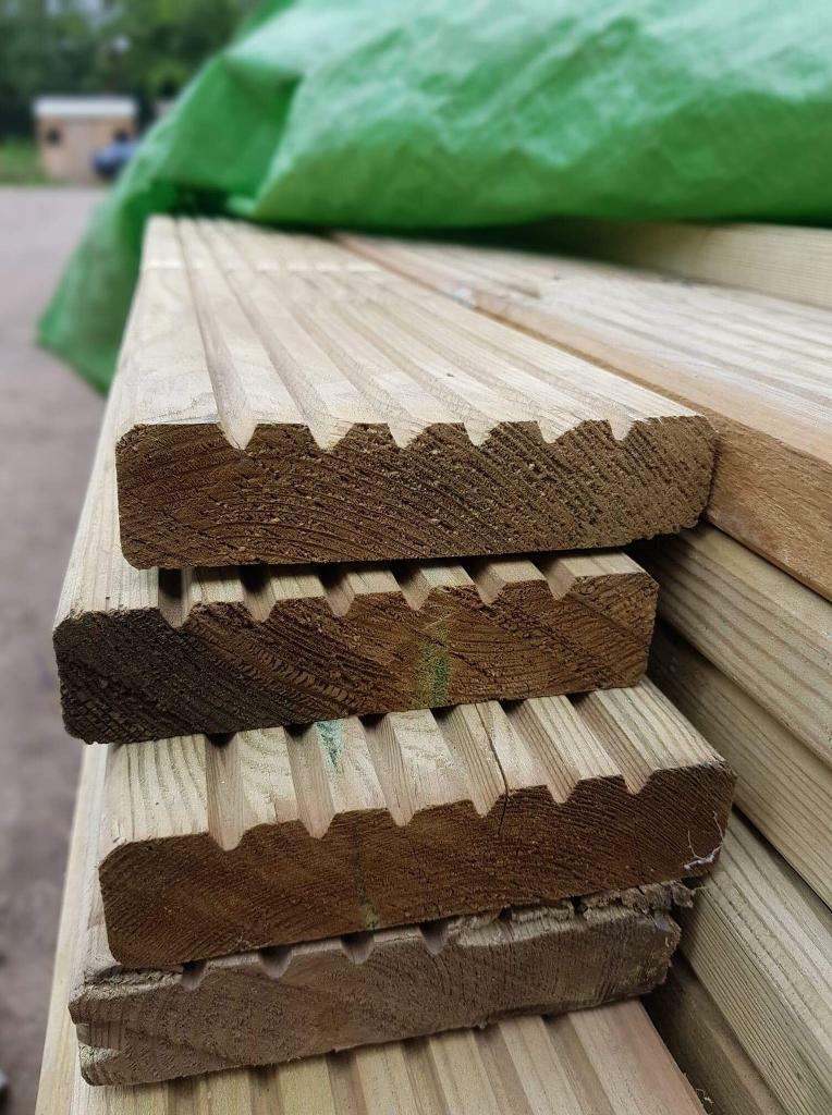 Top quality pressure treated redwood decking boards.