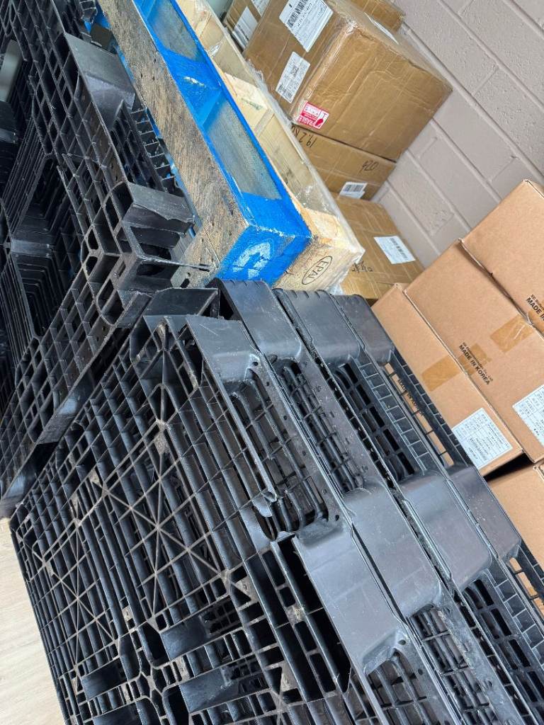 Free pallets (2 wooden + 5 plastic) ready for collection at Wapping area, London! Buyer to arrange and cover pickup costs.