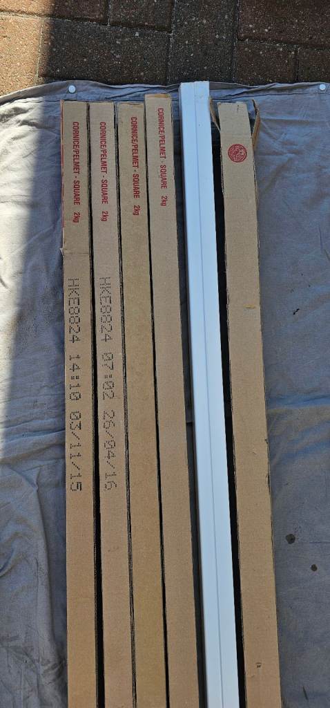 6x brand new gloss white cornice/ pelmet from Howdens. Length 243 cm. Still in original packaging. Price per cornice.