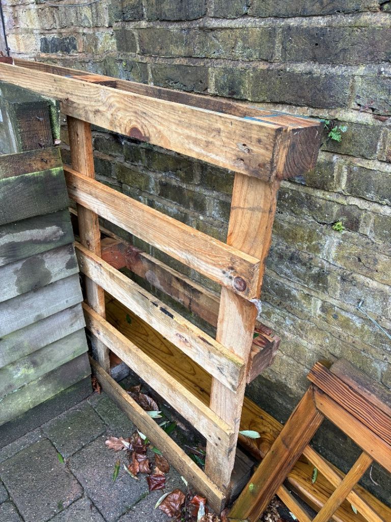 3m long fence post, heavy duty slotted post. 120mm width. Also a pallet and other timber pieces as shown. Available for collection Teddington TW11.