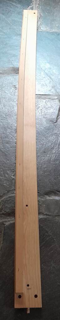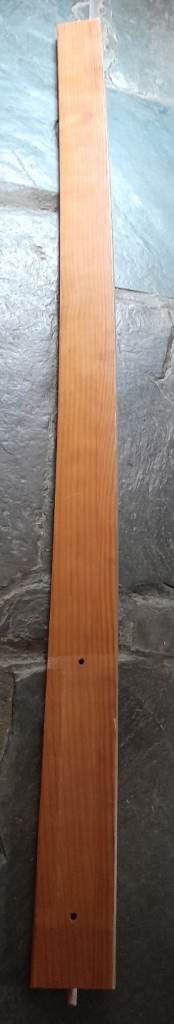 Length of solid bowed pine, length 192cm, width 10cm, depth 2cm. Lovely pine grain, suitable for furniture making, shelving and upcycling projects. Good condition.