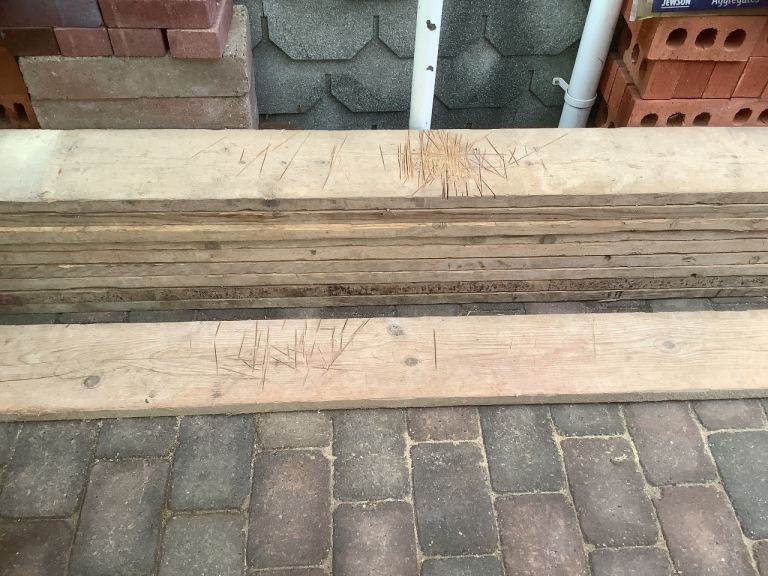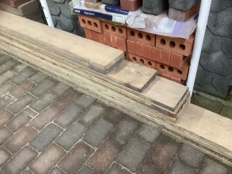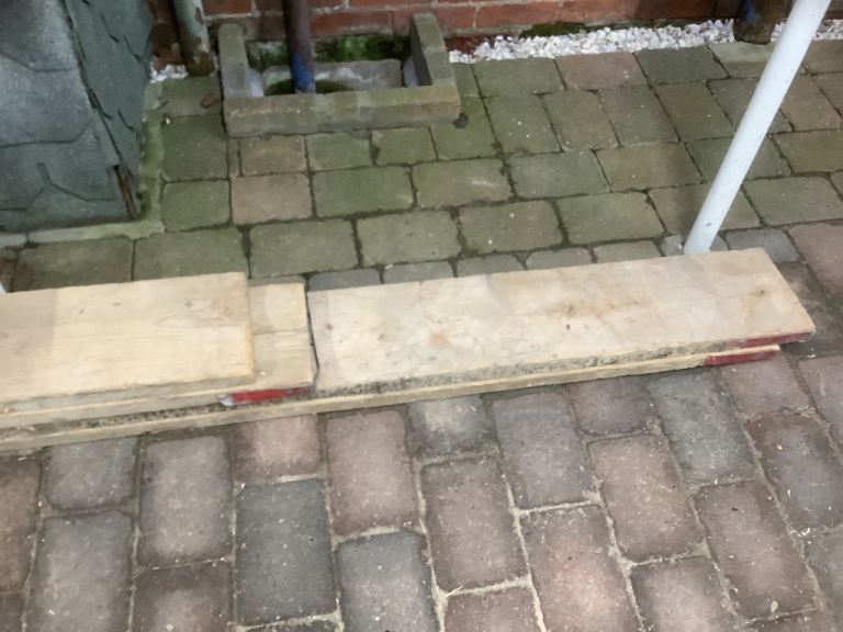10 USED OLD SCAFFOLD BOARDS, VARIOUS LENGTHS, 2 x 3.9m, 1 x 3.0m, 1 x 2.9m, 4 x 2.4m, 1 x 2.1m, 1 x1.9m, USED BUT IN A USABLE CONDITION, 2 OF THEM HAVE CUT MAKES ON THEM, £20 THE LOT, LOCATED IN THE HELLESDON AREA.
