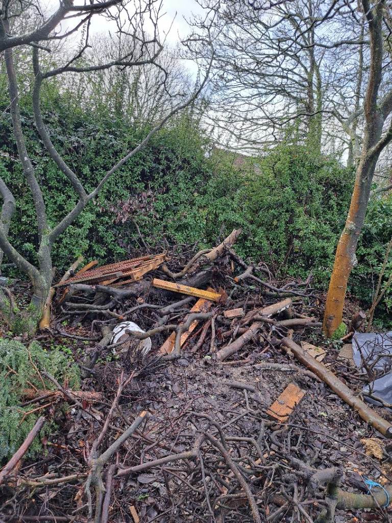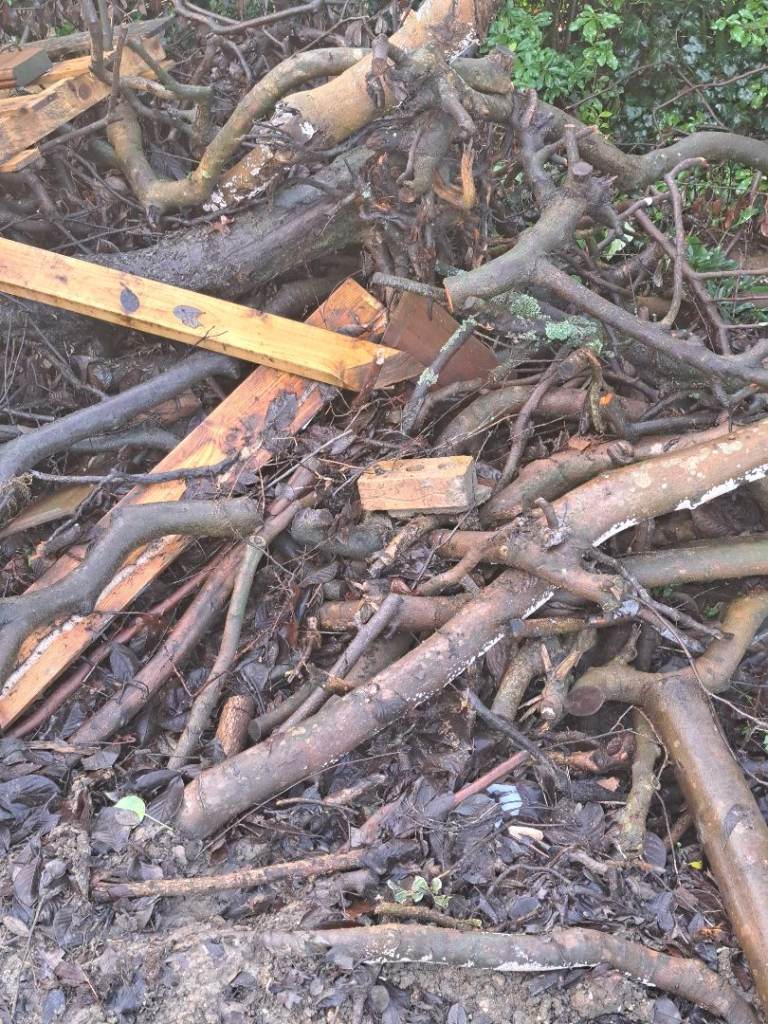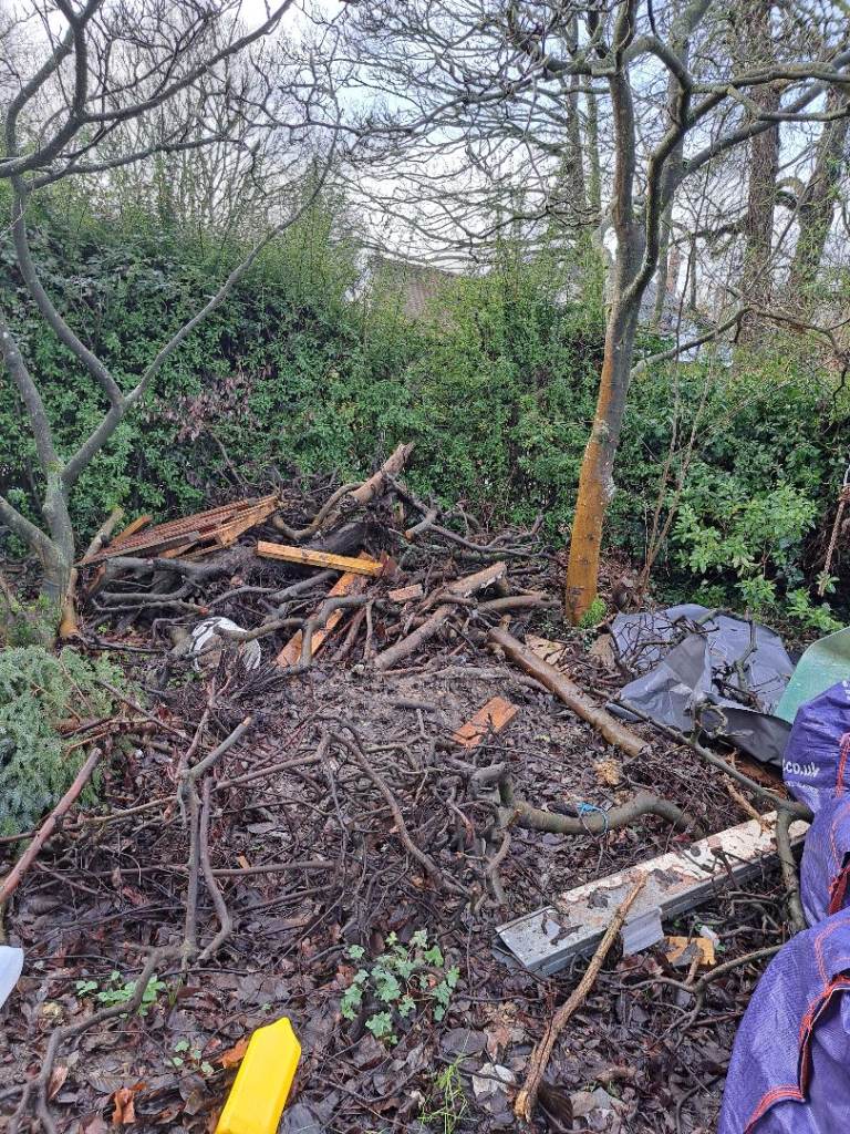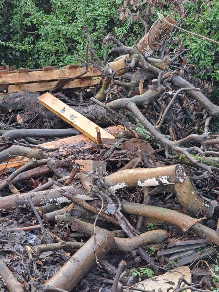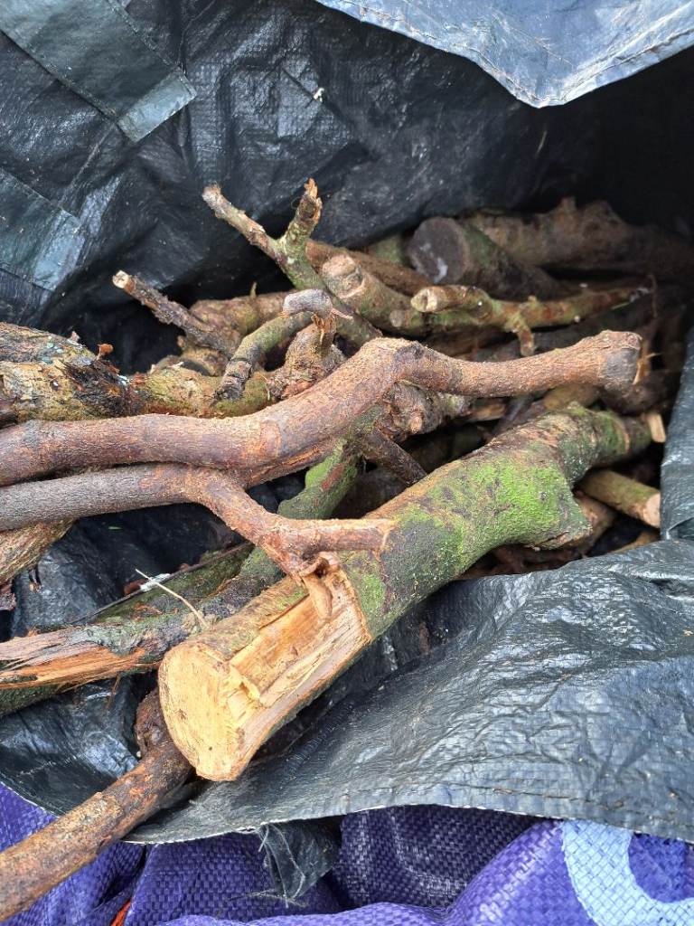 a whole load of tree choppings from kindling twigs to to big tree chunks and left over timber - 4 sacks and a couple of piles. keep your wood burner and bonfire going - all needs to be taken