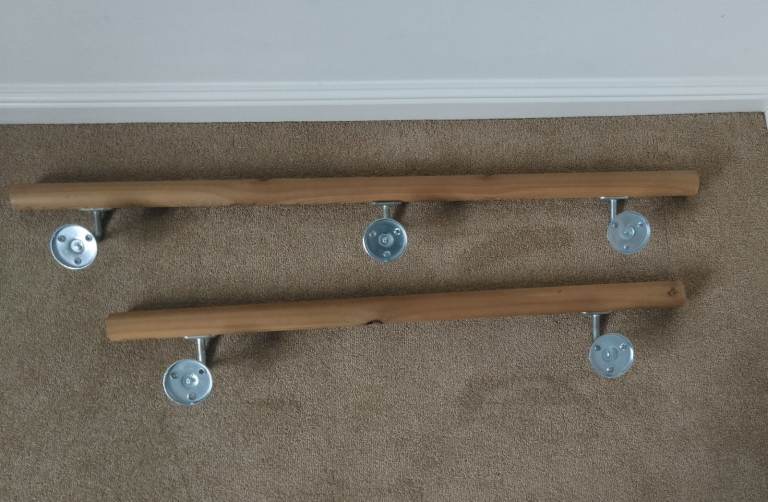Posting for 9+ yearsPine mopstick handrails with brackets