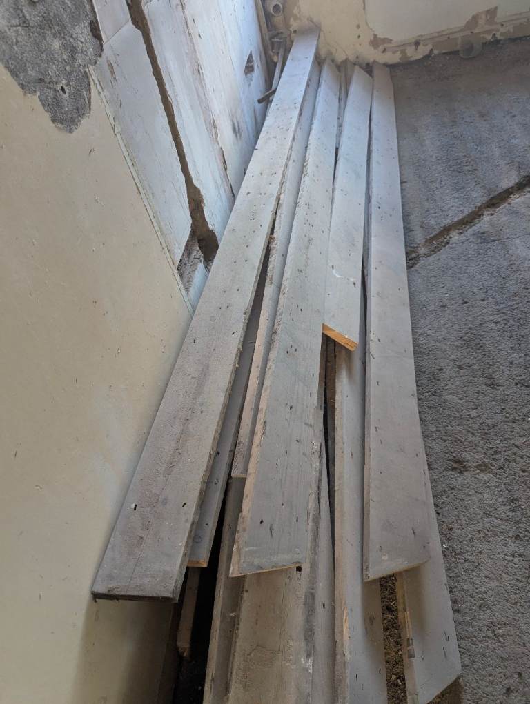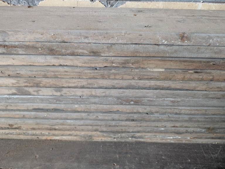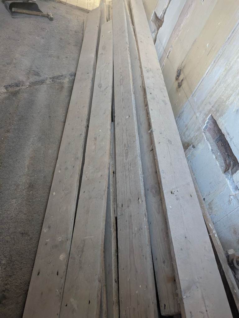 Reclaimed pine (?) floorboards approx 13m²
