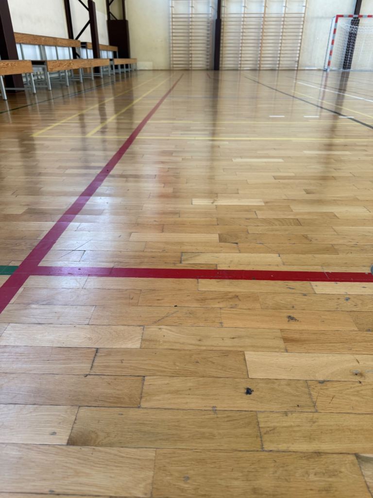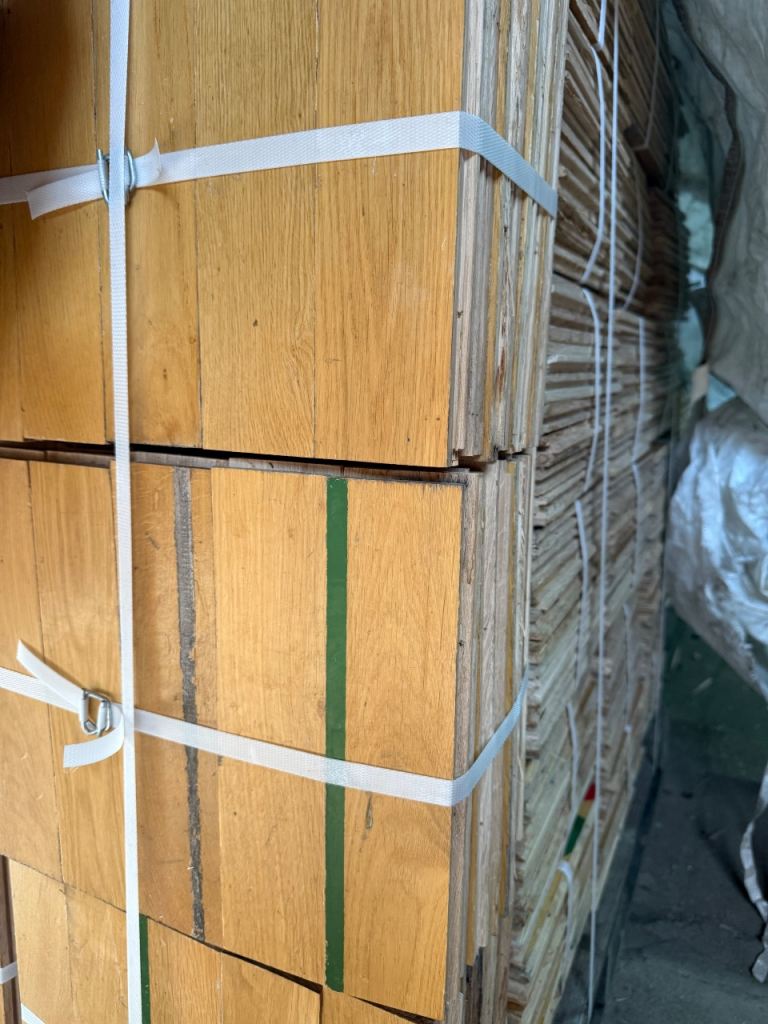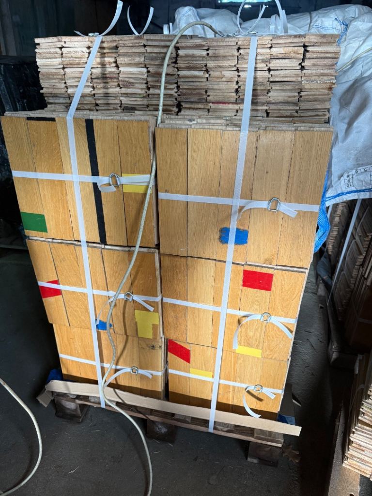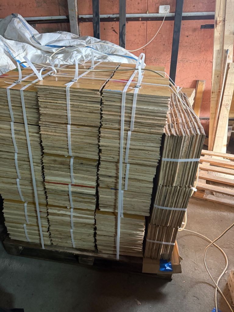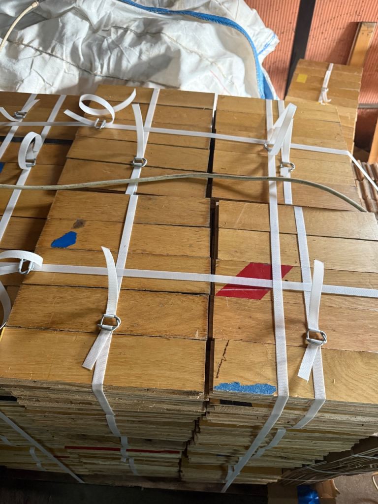 Solid oak parquet flooring reclaimed from sports hall. The parquet is very nice and clean without adhesive or bitumen.
