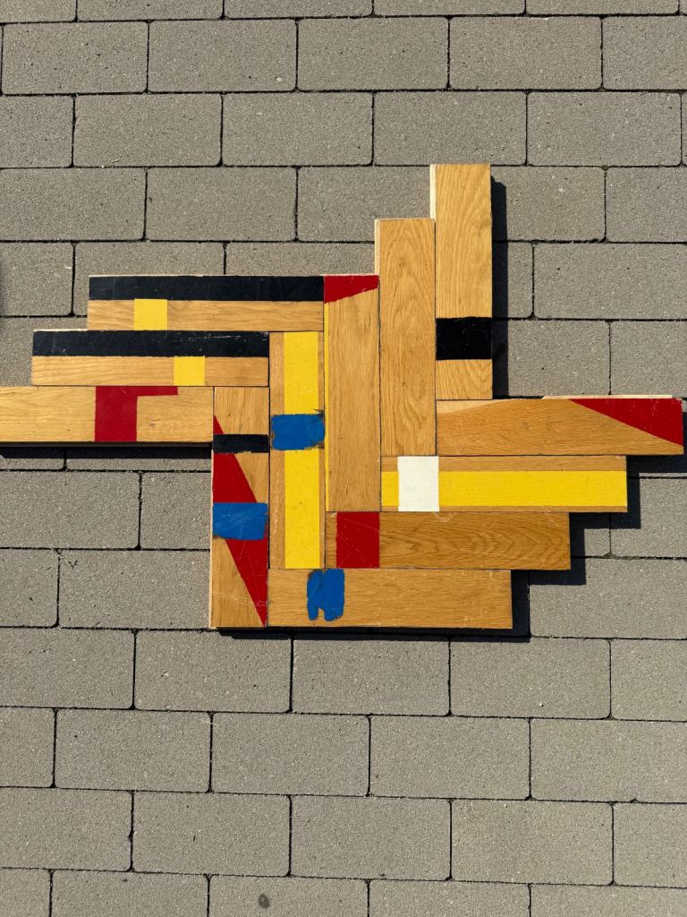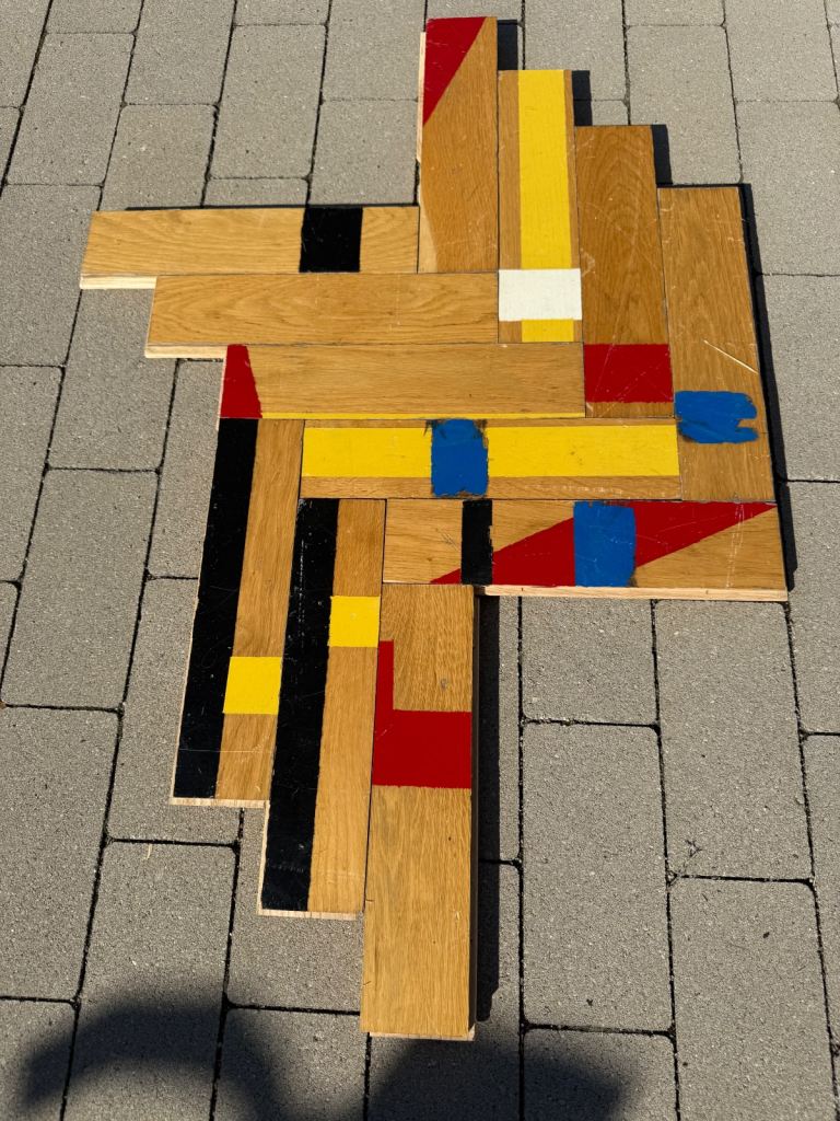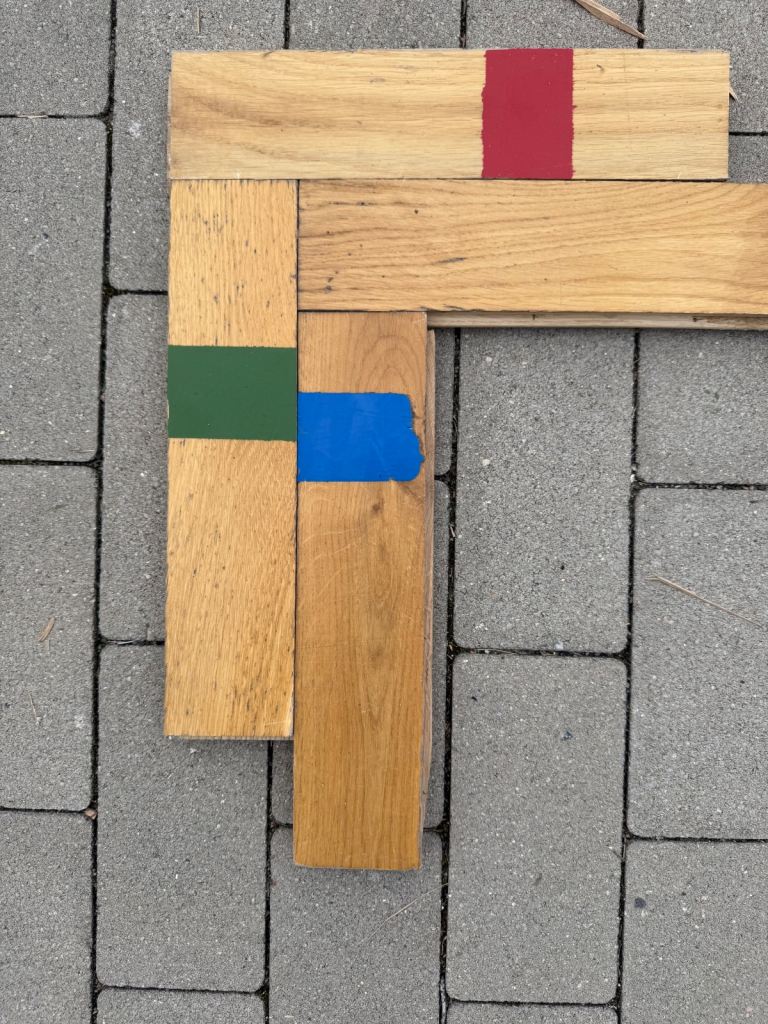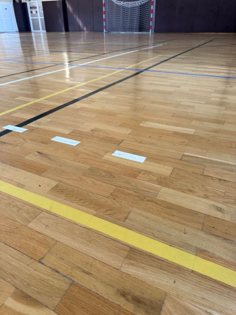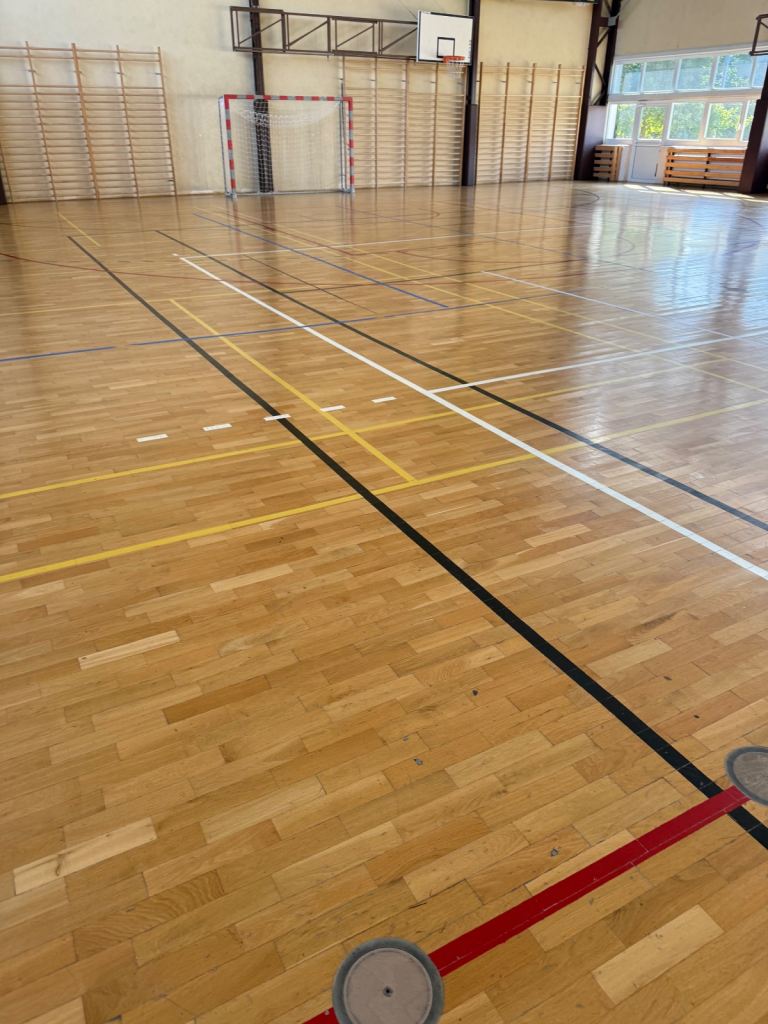 Solid oak parquet flooring reclaimed from sports hall. The parquet is very nice and clean without adhesive or bitumen.