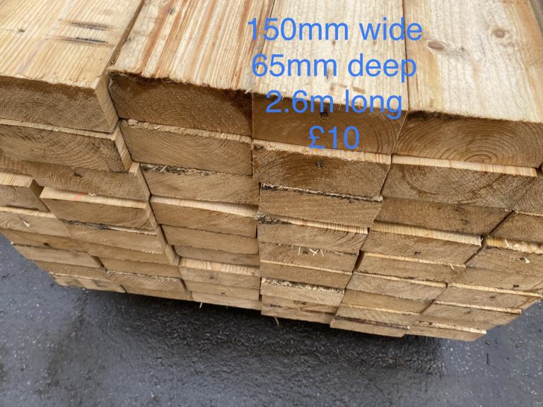We have 100’s of these reclaimed 2.6m long 150mm wide lengths of timber at £10 per length.