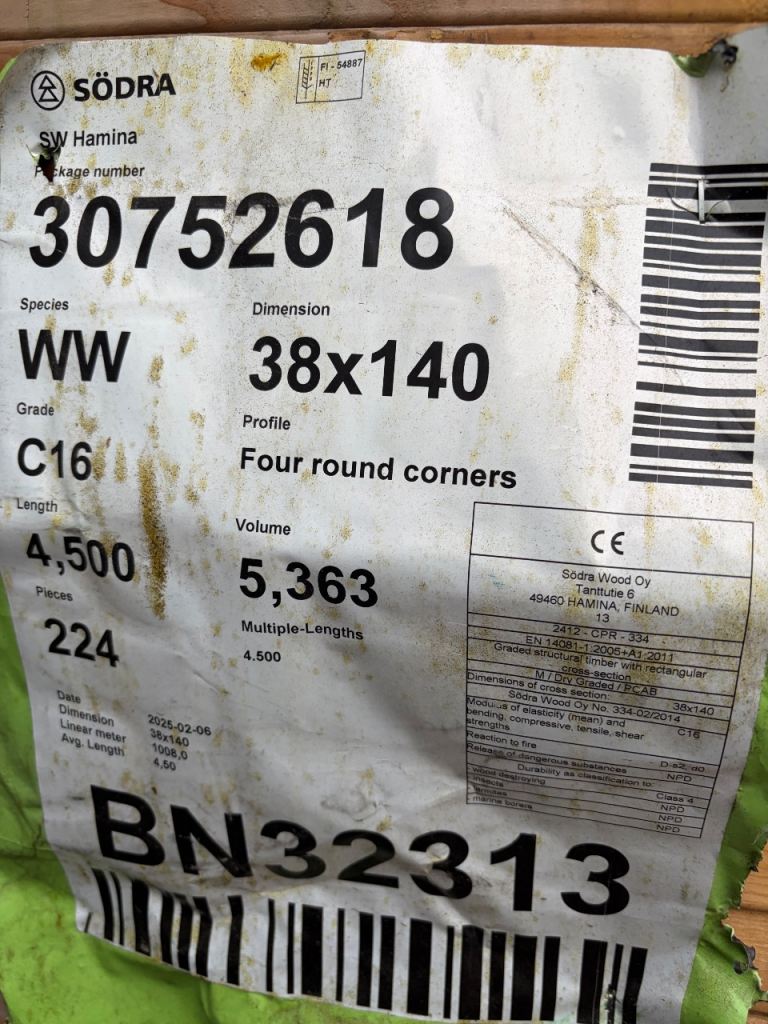 Brand new double vac vac treated timber joists, c16 graded , 38 mm x 140 mm x 4.5 metres long