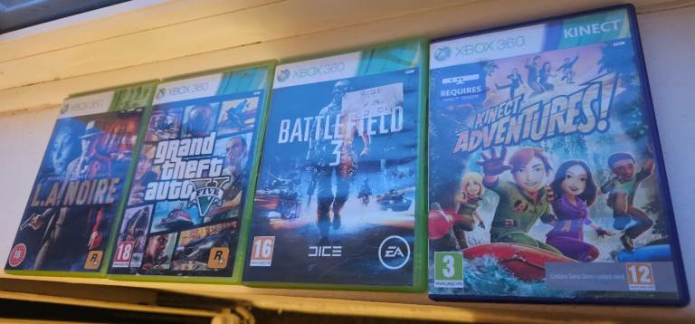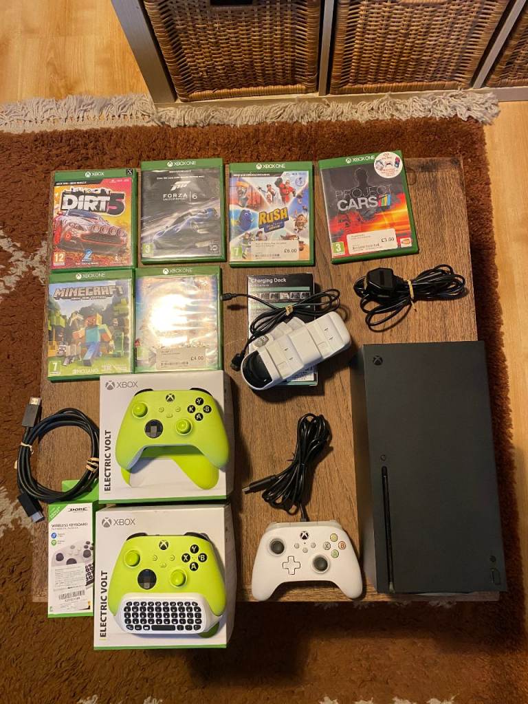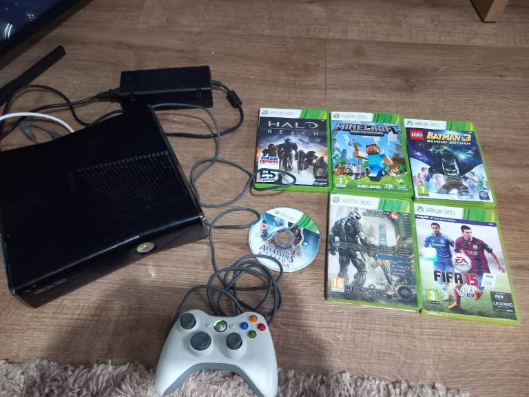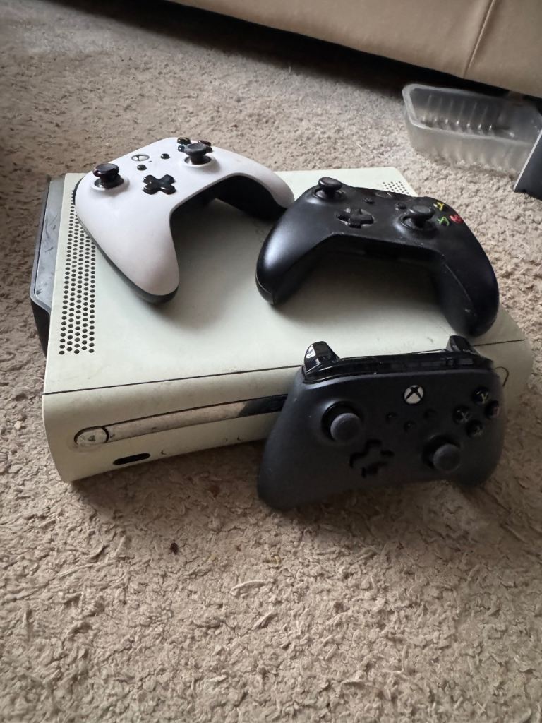 X box 360 console + games + controllers and all cables