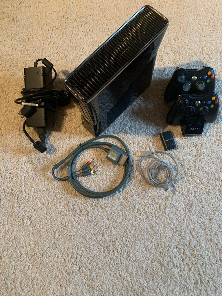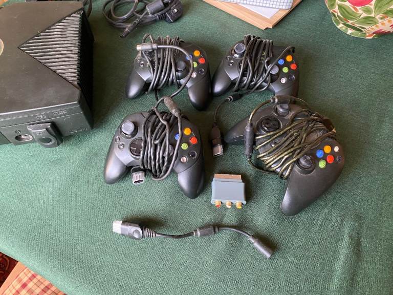 XBOX 1(One) purchased in 2003 for our children been stored for the past ten years. Has four consoles, with cables and DVD and adapters. I haven't tried it out but it switches on and seems to be in good working order.