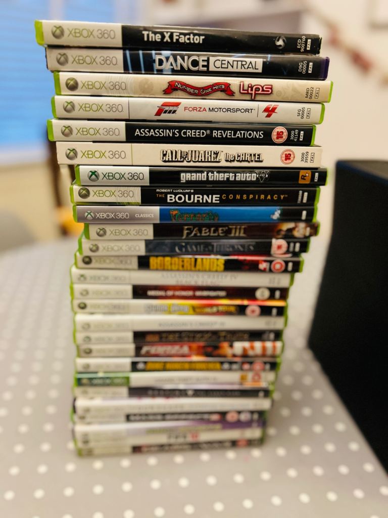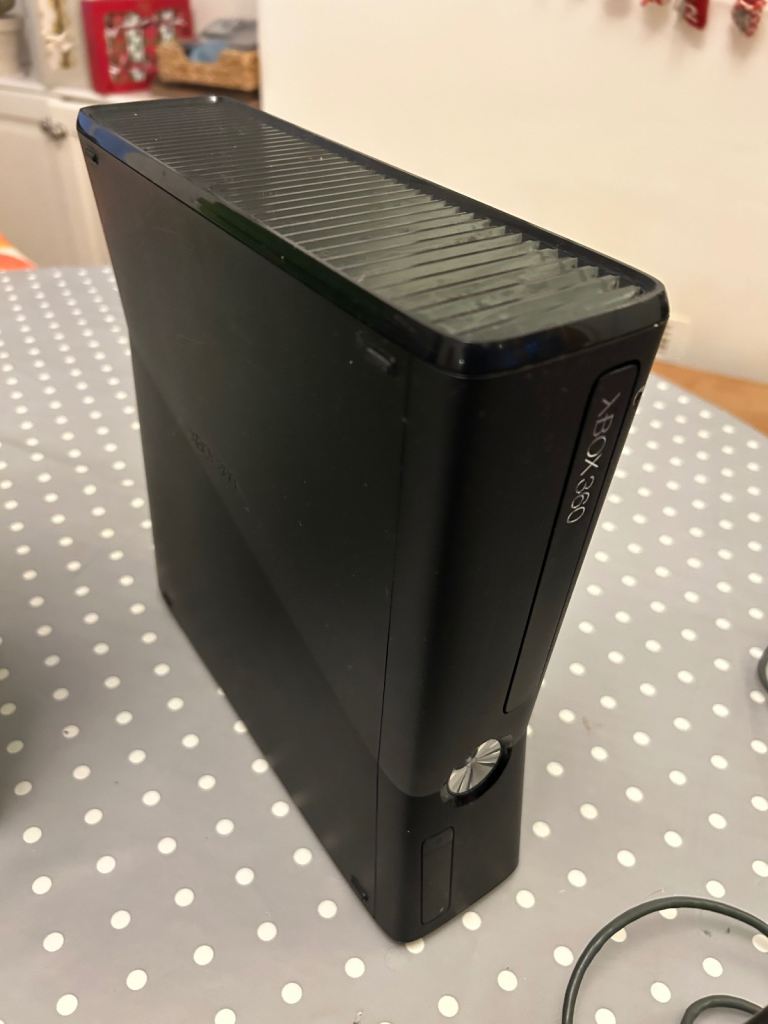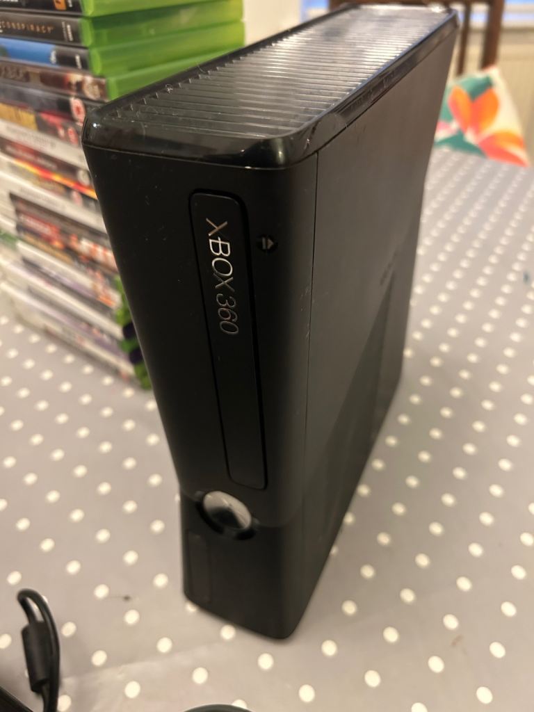 Xbox 360, well used but still works well. Comes with power lead but no hdmi lead, a Kinect sensor bar, 2 controllers and 26 games. No charger for wireless controller so unable to test but worked when last used about 6 months ago. Collection only from Stapleford