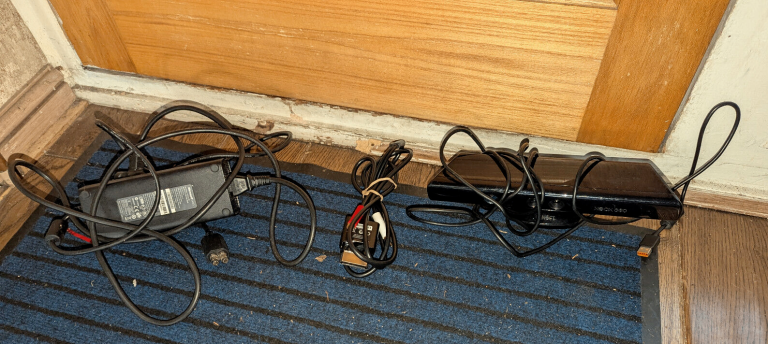AV wire, Plug and play charging adapter cable, power bank and Kinect.