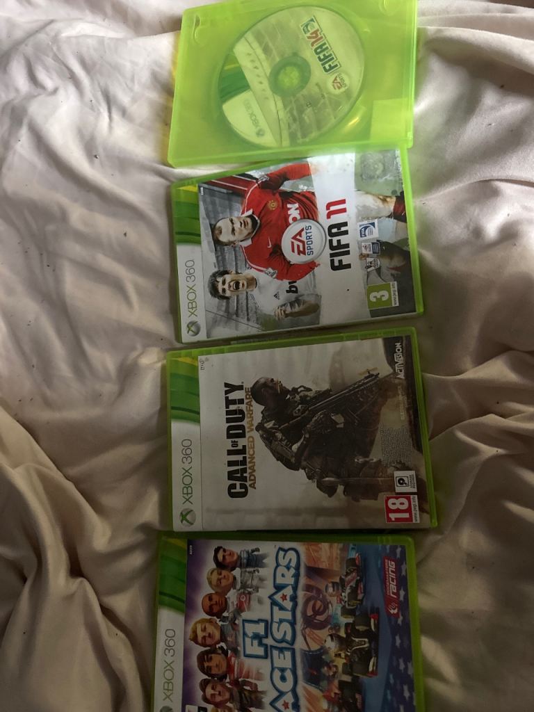 Xbox 360 (Condition: fair *general wear and tear*) comes with original wireless controller as well as an additional wired controller and 4 games. Selling as not used anymore, will be fully cleaned before sold