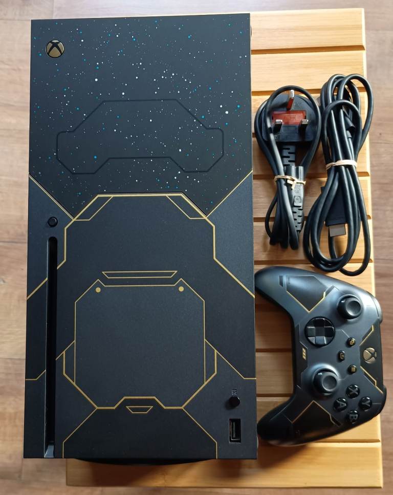 I have for sale a XBOX Series X console, which is the Halo Infinite limited edition 1TB version, all original components are present and working minus the box which I damaged beyond repair whilst storing and transporting.