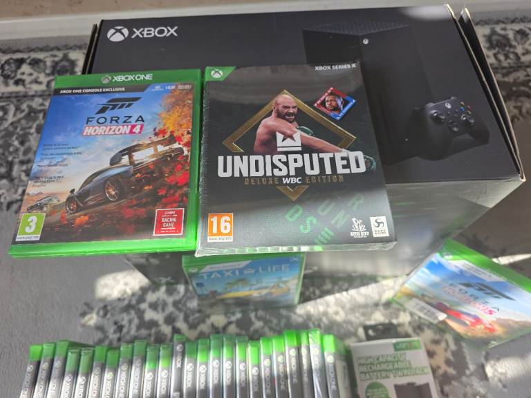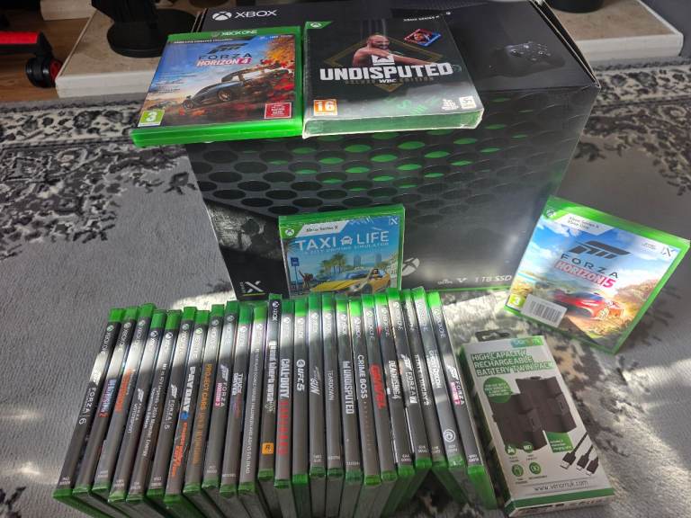 xbox series x all boxed only setup never actually played 1tb memory all as new with controllers leads cables and accessories plus 28 top title games most still sealed total value aprox £1200 grab yourself a bargain everything absolutely as new,great xmas present price as a lot or nearest offer