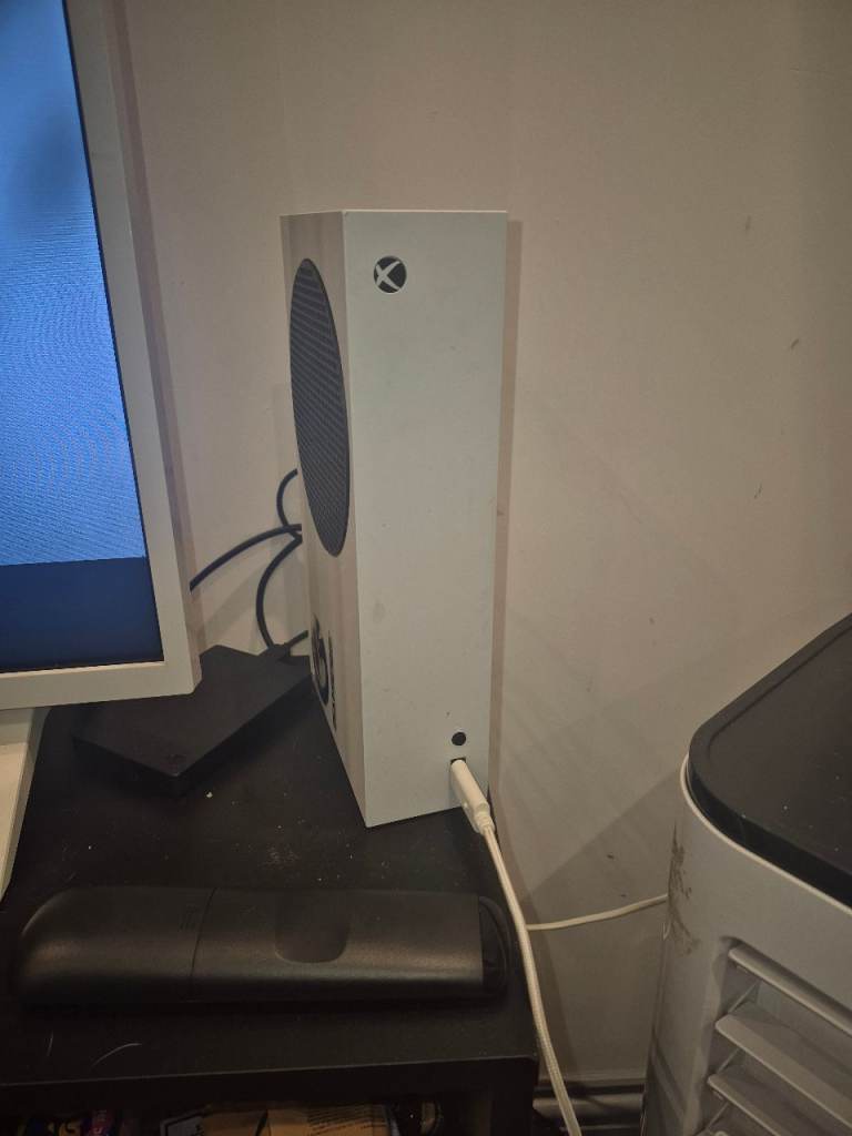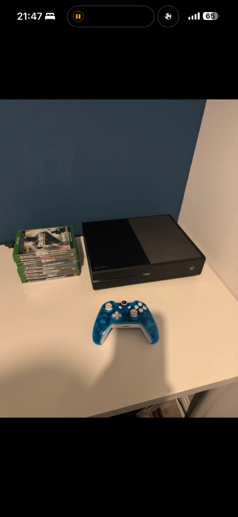 Xbox one near new condition if wasn’t for tiny bit of paint splatter at back works perfect only used for Netflix Disney etc comes with everything in picture will swap Xbox on it’s own with controller charging stand for a Nintendo switch thanks 200 for everything or