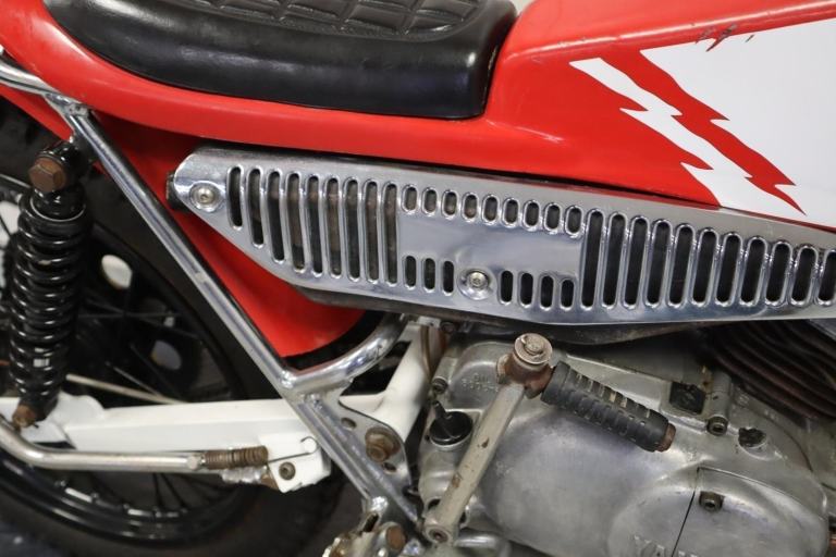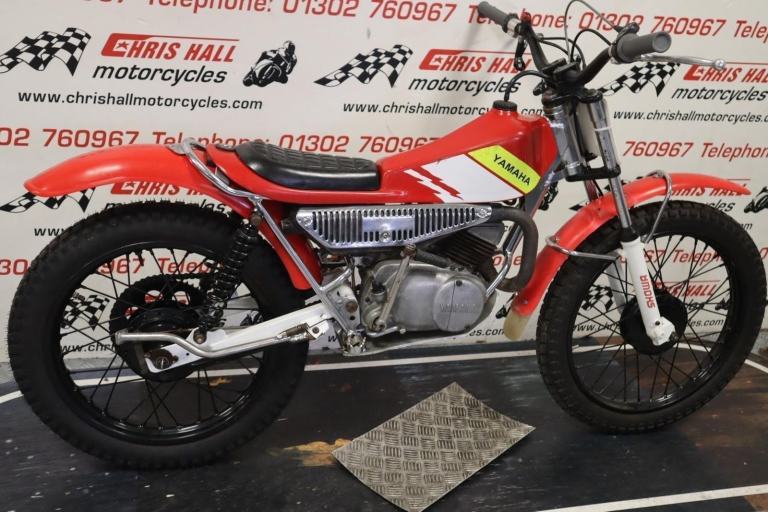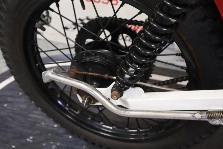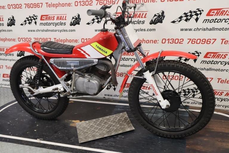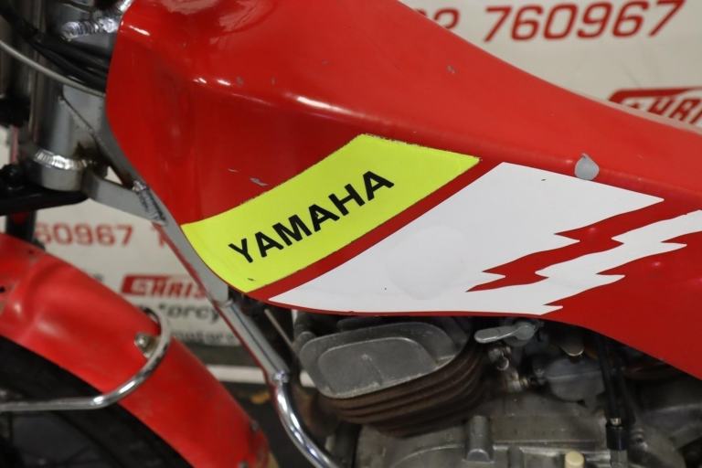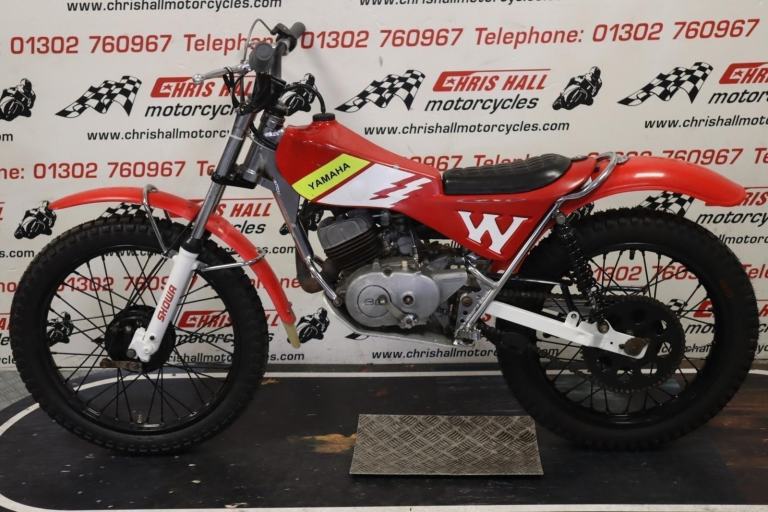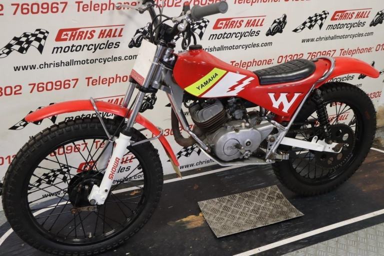 1980 Yamaha TY80 Whitehawk, bigwheel. A rare bike built by Mick Whitlock, using Reynolds tubing. The Whitlock 80 played a major part in the youth trials in that period. The white hawk frame won everything in its wake in that period for youths.