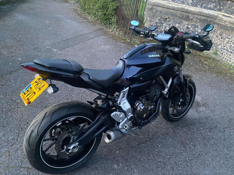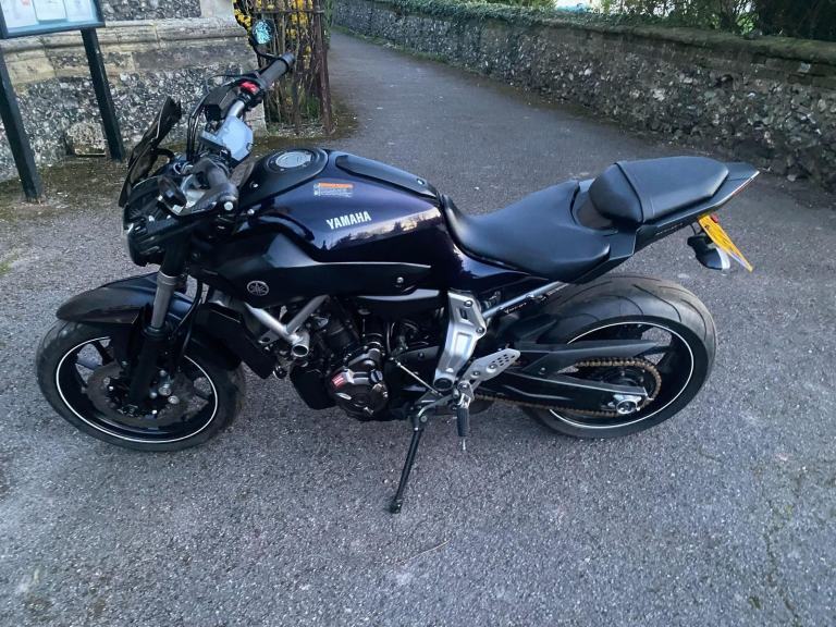 Purple, 2014 (14) Yamaha MT07 in stunning Very Dark Viloet which has covered 29438 miles.Fitted with Oxford Hot Grips, a dark tinted fly-screen, tail-tidy, wheel rim pin stripes, hand guards and bar-end mirrorsComes with 1 black immobiliser key with the all important red master coding key and an owner's manual and service record book.New rear tyre recently fitted and the front is very good.Will be serviced by us.MOT until 15/8/2026FINANCE / EXTENDED WARRANTIES / NATIONWIDE COURIER DELIVERY, 7 owners, , Courier Delivery / Finance / Part-Exchange and Extended Warranty are all available