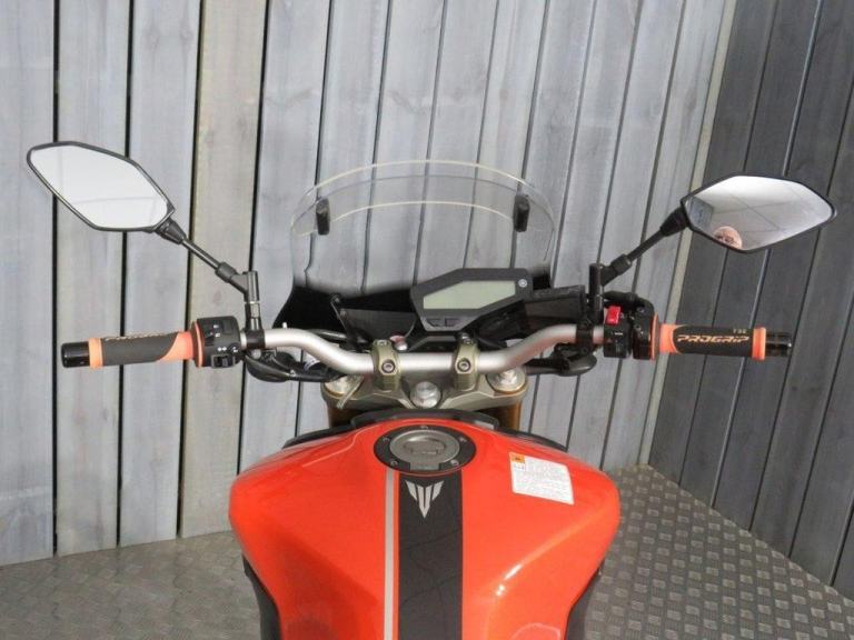 This 2015 ORANGE YAMAHA MT-09 motorbike has done 7042 miles and is in brilliant condition. It's available for collection from our BRADFORD showroom or can be delivered anywhere on the UK Mainland. This bike has 5 previous owners, comes with 2 Keys, and a PART SERVICE HISTORY.