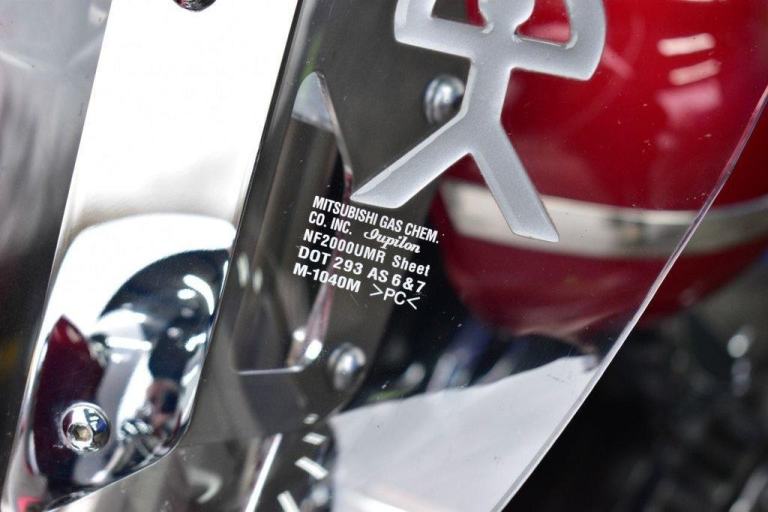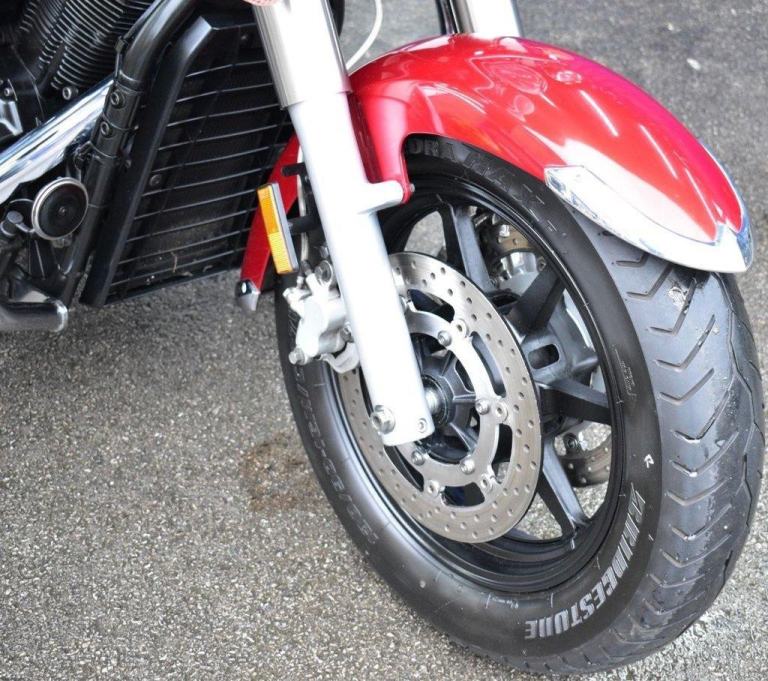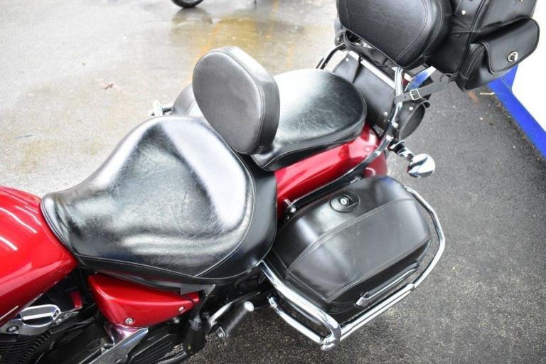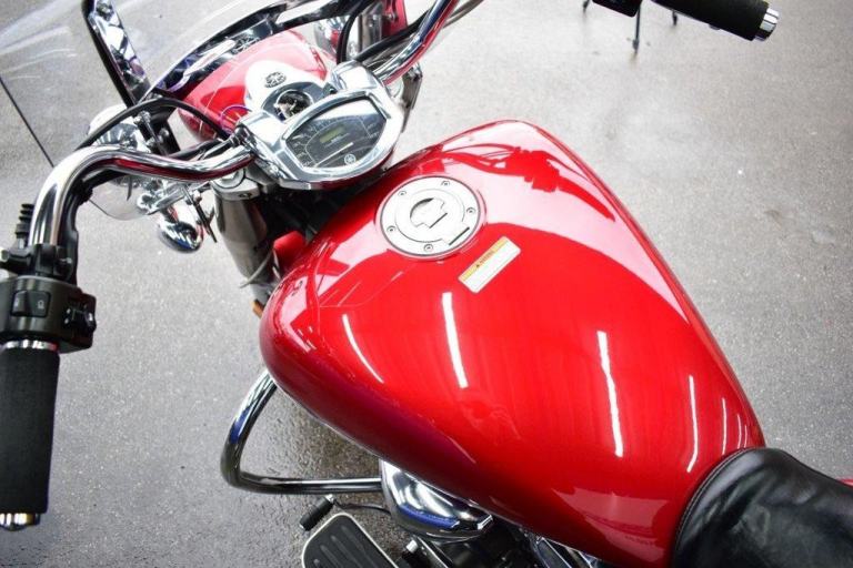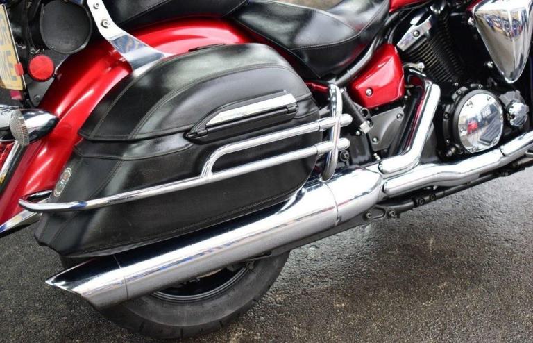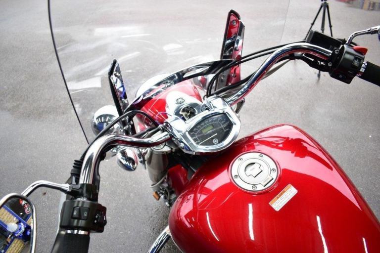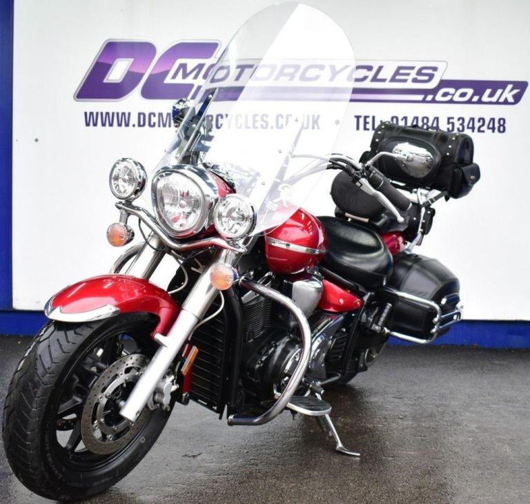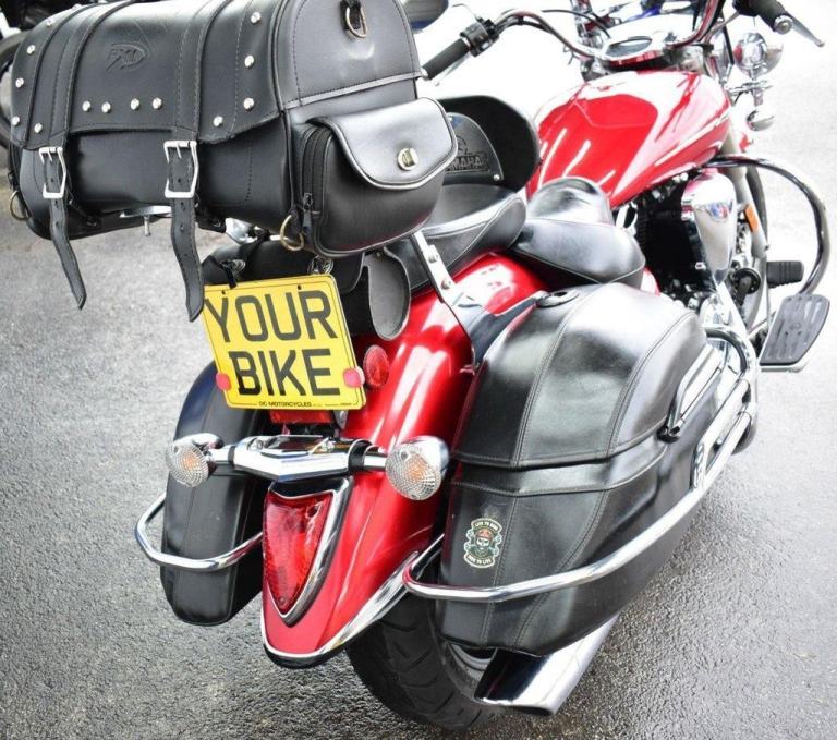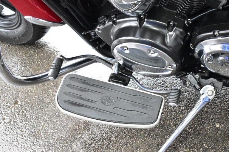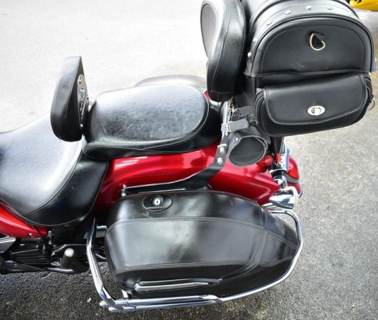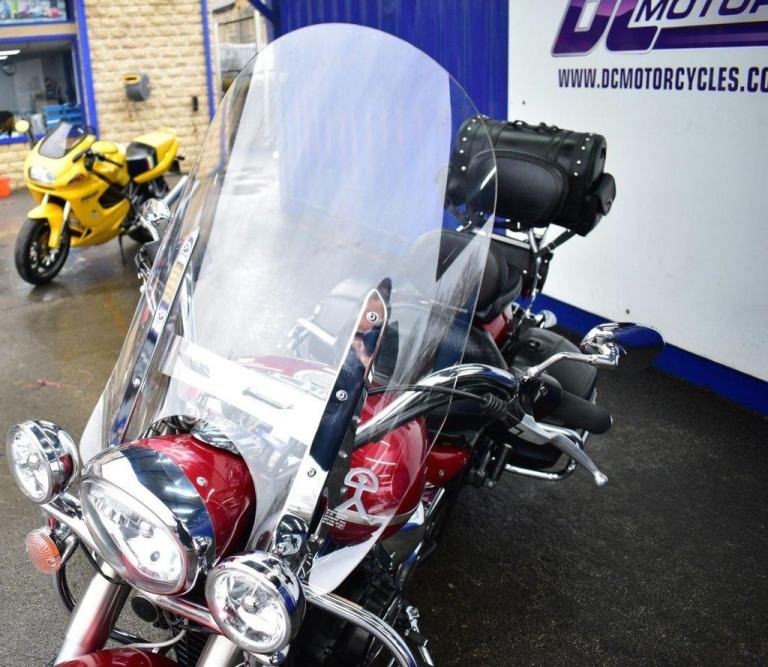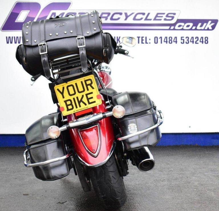 This gleaming red cruiser is a beauty, an all day cruising machine, capable of taking a rider and pillion, many thousands of miles in comfort, with 4 piece luggage, plenty of storage for clothes and beer, the bike comes with a massive wide, 19L tank, the panniers are protected with side impact vanity bars that look like something from a 1957 Chevrolet, the engine is also protected with a large pair of crash bars, nice features for comfort are the tall screen and forward controls with footboards, this certainly is a luxury cruiser, and for us older folk, this is now the only comfortable postion for riding. Just 2 previous owners from new, so a 19 years old bike, that looks like it just rolled out of the showroom on day one. The bike is running a belt for drive, and is a 5 speed gearbox, the nifty heal and toe gear change are great for people wearing big riding boots. The bike was first registered in the UK in 2016, but the bikes first registration is dated as 2007.