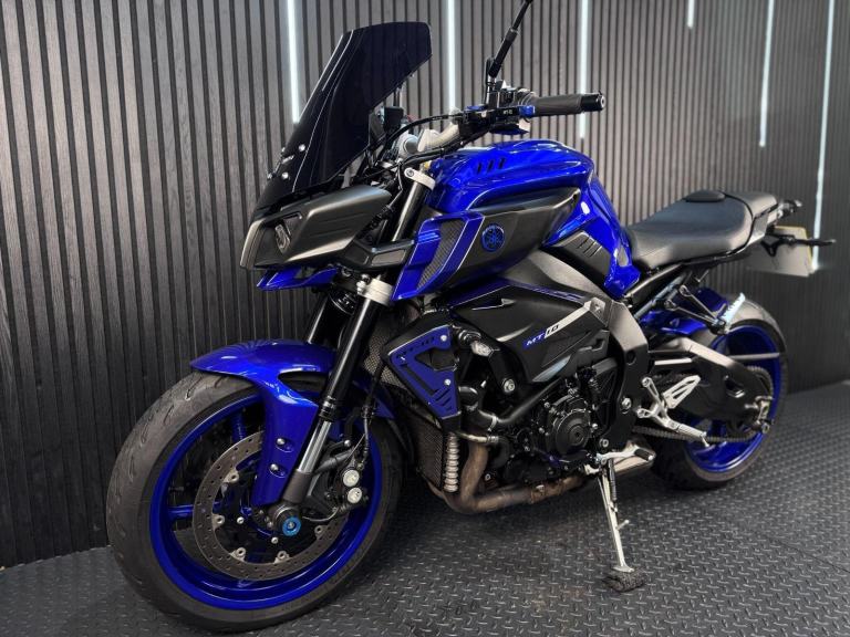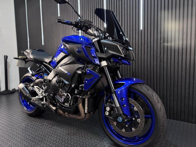 Blue, 24/7 ONLINE PURCHASE AVAILABLE - For sale is this brutal and exhilarating 2017 Yamaha MT-10, finished in the iconic Yamaha Blue with color-matched wheels. This machine has covered 13,169 miles and is in excellent condition, perfectly capturing the mechanical, ''dark side of Japan'' aesthetic that made this bike a modern legend. With its unmistakable robotic face and muscular stance, it is one of the most recognizable and respected bikes on the road. For your complete peace of mind, it has just received a fresh oil and filter change along with a full general inspection by our specialist technicians. It comes complete with two keys and all relevant documentation. The Yamaha MT-10 is the definitive choice for the rider who wants superbike performance with real-world usability. It is powered by the 998cc CP4 (crossplane) inline-four engine, a powerplant world-renowned for its uneven firing order that mimics the sound and ''grunt'' of a V4. Producing a staggering 158 BHP, it delivers its power with a linear, relentless surge that makes it one of the most exciting engines ever put in a naked chassis. What sets the MT-10 apart is its R1-derived DNA; it uses the same aluminum Deltabox frame and swingarm as the flagship superbike, providing incredible stability and precision. The 2017 model is packed with high-end tech, including a Quick Shift System (QSS), three-level Traction Control, D-Mode power maps, and even Cruise Control for longer journeys. With its fully adjustable KYB suspension and upright ergonomics, the MT-10 remains the definitive choice for the rider seeking a raw, characterful, and technologically advanced naked bike that offers a truly visceral riding experience.***Rest assured, your new bike includes a 3-month warranty (extension options available) and is guaranteed to have at least 6 months remaining on the MOT. Making your purchase simple: Explore our flexible finance plans and benefit from our affordable nationwide delivery service.***, 5 owners, 2 keys, ABS, Electric start, Stainless Exhaust, Tail Tidy, Tank Pad, Traction Control, Please visit our website to buy online, apply for finance or find out about our delivery prices.