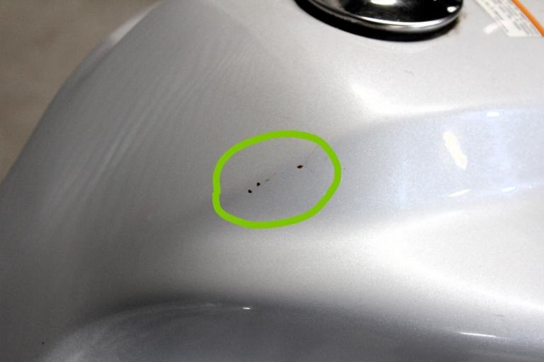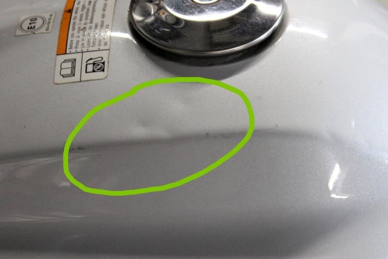 BAD POINTS/DAMAGE: There is some surface rust on the bike in places (mostly the exhaust) and it would benefit from a clean. The bike has been off of the road for a few years but we fitted a new battery and it runs well. There are some stone chips and small dings in the petrol tank (circled in green) and some scratching on the plastic exhaust cover. Other than the above I cannot find any other faults with this bike. Please study the pics as this description is just a guide.