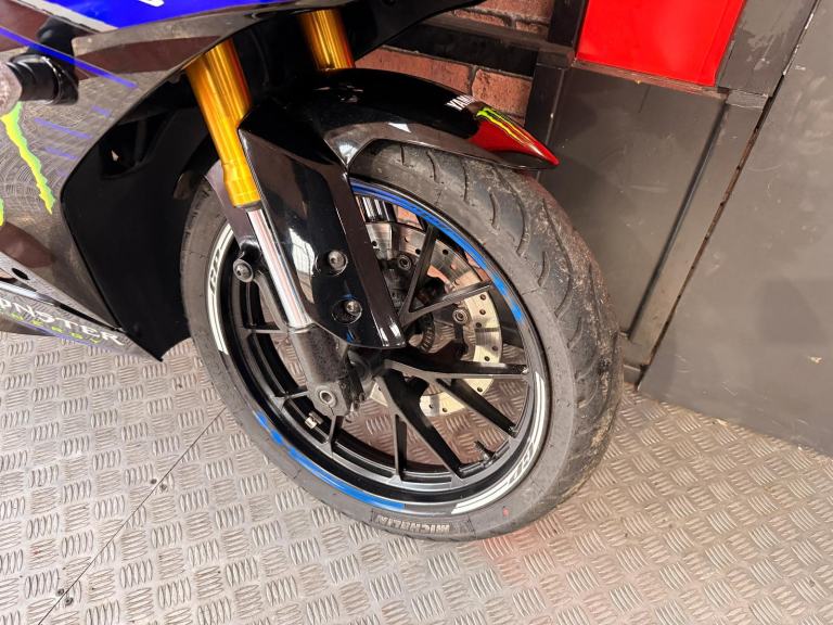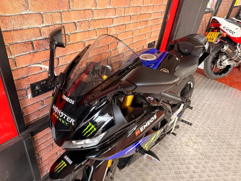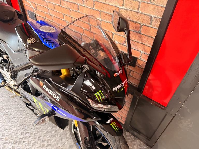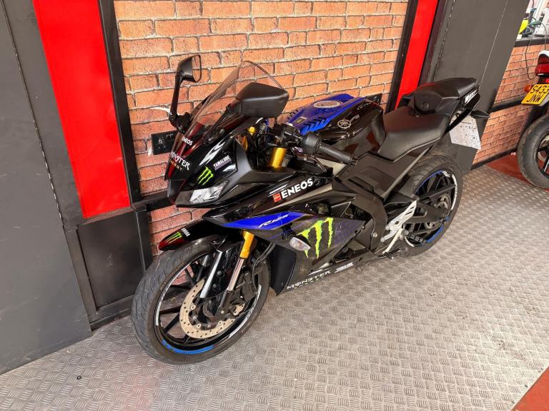 Here we have for sale a fantastic example of the YZF-R125, this is a limited edition MONSTER ENERGY YAMAHA MOTOGP bike and looks amazing, the bike is mostly standard apart from the aftermarket exhaust which gives it a great sound, the bike comes with both keys, service history and manual, This exclusive edition of the YZF-R125 perfectly reflects its racing pedigree with the Monster Energy Yamaha MotoGP inspired livery that closely matches the YZR-M1s look of MotoGP superstars Valentino Rossi and Maverick Viñales. The edgy, aggressive styling is unmistakable and the instantly recognizable green Monster Energy claw marks this out as a track predator. This special edition gives riders the opportunity to take one step closer to the world of racing talent, proudly reflecting pure Yamaha racing DNA on their own machine. Of course a genuine Supersport machine needs the power to back up the styling and this edition of the YZF-R125 doesn’t disappoint. With a 125cc liquid-cooled 4-valve engine beating at the center, it provides high-output torque and a broad, smooth power delivery at the flick of a wrist.