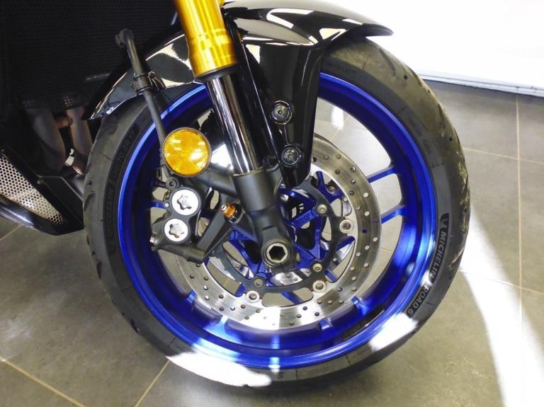 The MT-09 SP is surprisingly comfortable and incredibly nimble. Equally at home touring through Wales or hooning around a track. It hassix-axis IMU to provide traction, slide and wheelie control and cornering ABS. It also comes with a quick-shifter and auto-blipper as standard along with engine modes and a slip assist clutch. The SP model also benefits from an Ohlins rear shock and Brembo mono-bloc callipers with braided hoses
