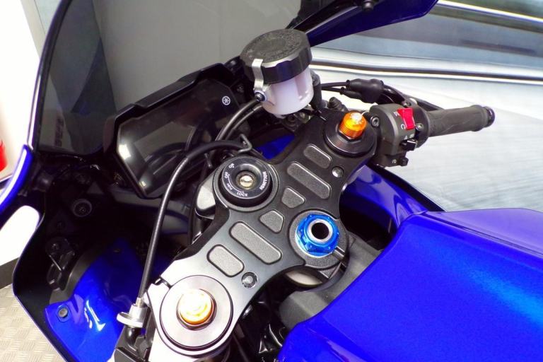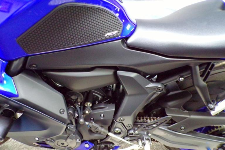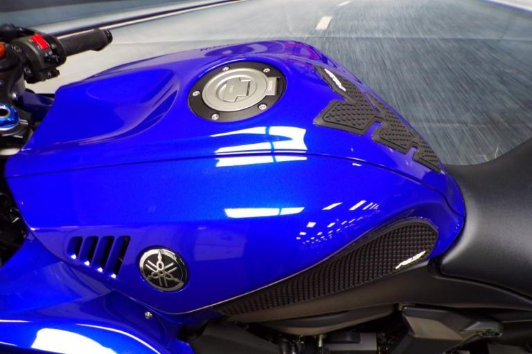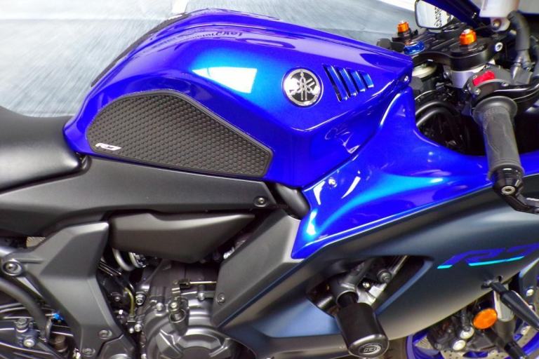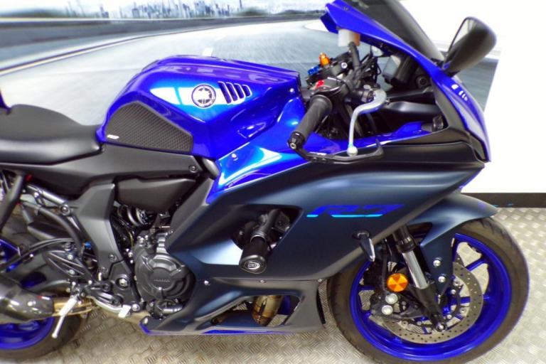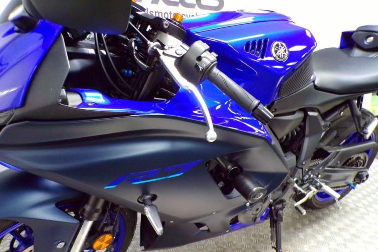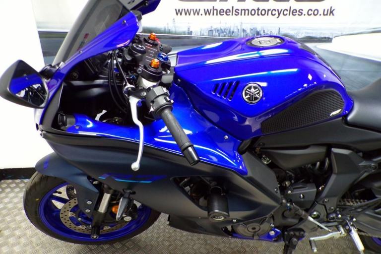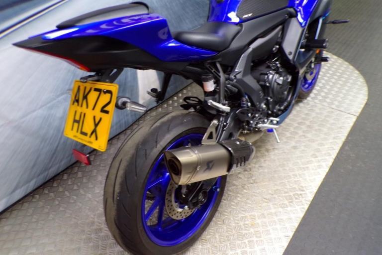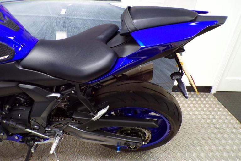 THERE IS ABSOLUTELY NOTHING WRONG WITH RIDING A SLOWER BIKE FAST, AND THIS MIDDLEWEIGHT OFFERING FROM YAMAHA ALLOWS YOU TO DO JUST THAT, IT IS A HIGH REVVING PARALLEL TWIN OFFERING YOU THE CHANCE TO RIDE THIS ON ROAD WITHOUT BREAKING EVERY SPEED LIMIT, THESE BIKES ARE AMAZING FUN AND IN THIS BLUE COLOUR IT LOOKS BEAUTIFUL. FITTED WITH THE PERFORMANCE PACK FROM YAMAHA FOR THAT DIFFERENCE IN LOOKS AND SOUND ABOVE THE STANDARD R7'S