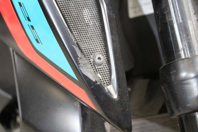 BAD POINTS/DAMAGE: This bike is filthy and would look loads better after a clean. It has some scratching on a small area of the right hand ramair intake and there is a piece missing from one side of the front mudguard. Please study the pics as this description is just a guide.