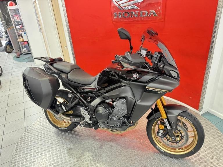 Experience the perfect blend of performance, comfort, and style with this Yamaha Tracer 9 GT the ultimate sports tourer for riders who demand more from every journey. Designed for the open road, it combines Yamaha' renowned triple-cylinder engine with advanced electronics, a refined chassis, and a host of premium touring features. With its adjustable suspension, full-colour TFT display, quick shifter, and integrated hard luggage, the Tracer 900 GT delivers effortless versatility whether carving through twisty backroads or cruising across the country. Finished with striking new graphics and superior ergonomics, it' built to make every ride as thrilling as it is comfortable your ticket to first-class adventure on two wheels.