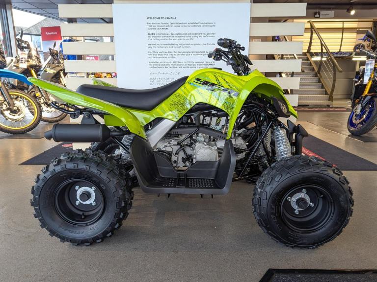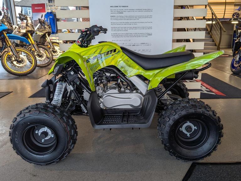 NEW COLOUR FOR 2026! - IN STOCK NOW: NEW Yamaha YFZ50 kids ATV/Quad. Acid Green. £3,100. With its compact body, simple controls and automatic 49cc engine, the YFZ50 is the perfect way to start out. Built for children between 6 and 9, this mini ATV is ready to provide hours of family fun. Safety comes first, and the YFZ50 has a range of features that give parents a high degree of control. Speed can be limited by the throttle screw and rev limiter switch – and a lanyard attached to a tether switch can cut the engine instantly. PLUS : Part-Ex and finance available, please ask for details.
