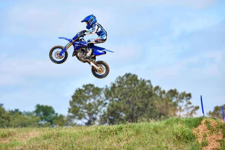 Adjustable 36mm upside down front forks and link-less Monocross rear suspension give stable handling over rough terrain, and the adjustable handlebar position enables the YZ65 to grow with you. Equipped with wave discs for powerful braking, a long padded seat and high-grip footrests for comfy riding, as well as dynamic new YZ-family graphics and updated Icon Blue bodywork, the YZ65 is ready to take you to the victorYZone!