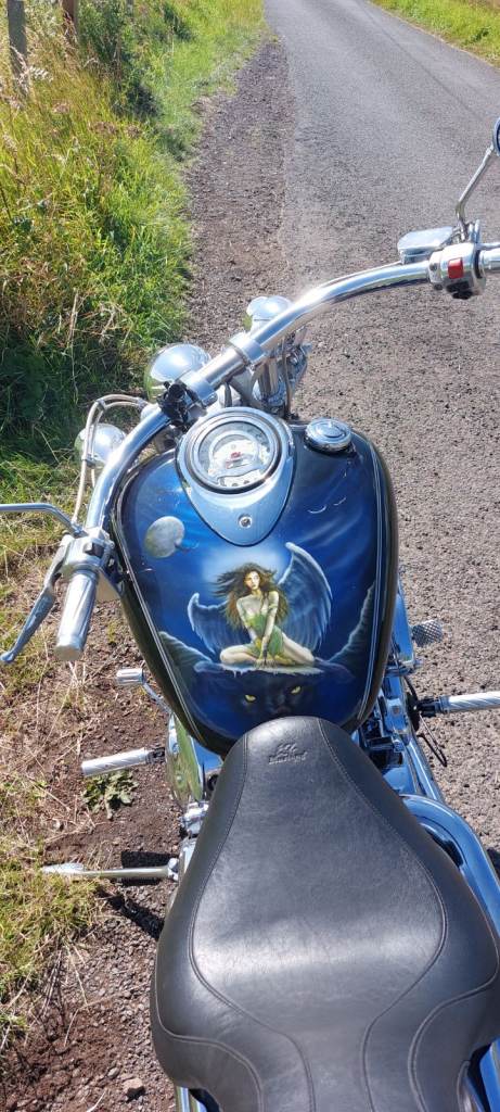 For sale Yamaha Dragstar 1100. Few mods incl. handlebars, lights, Kuryakyn hypercharger, custom paint tank, Mustang seat, grips, braided brake lines. Also comes with sissy bar, rear rack and saddle bag bars. Michelin Commander 2 tyres with plenty of thread on them.