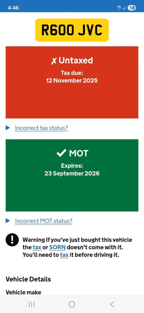 This vehicle has not been reported stolen, scrapped, exported or flagged as unroadworthy.