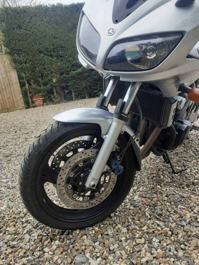 Yamaha Fazer 600 (2002) £1,300 ovno 30.250 miles on the bike service history is done by me since iv had the bike. I got it with 23000 miles on the clocks, 2 set of keys & 2 alarm fobs. It's got meta alarm system & smart water system. valve cleans are done with new plugs & caps, oil changes with filters & air filter. Body work as you can see in photo still the same way as got it never got round to sort it out. The bike is very quick & handles very well with the mods iv done. Very reluctant sale shame to see it go, but how will ever buys it will not be disappointed with it. I'm asking £1,500 ovno please please no stupid offers!! Any questions you can call me on Tel .. The up grades lots of them lol Renthal handle bar with BG bar ends Front brake calipers off R1(2002) Front bracket master cylinder off R1 (2004) Goodrige brake lines front & rear New brake pads front & rear Hegan up raeted spring in the forks with new seals. Rear shock off R1 2002 fully adjustable Up raeted front sprocket with new nut New Jack up plate to rase the bike up a bit Scottoiler with double fangs MHP exhaust Stage 1 daynojet kit New clutch (Barnett race) steels & frictions New battery Bridgestone Battleax in good condition Front fender exstender