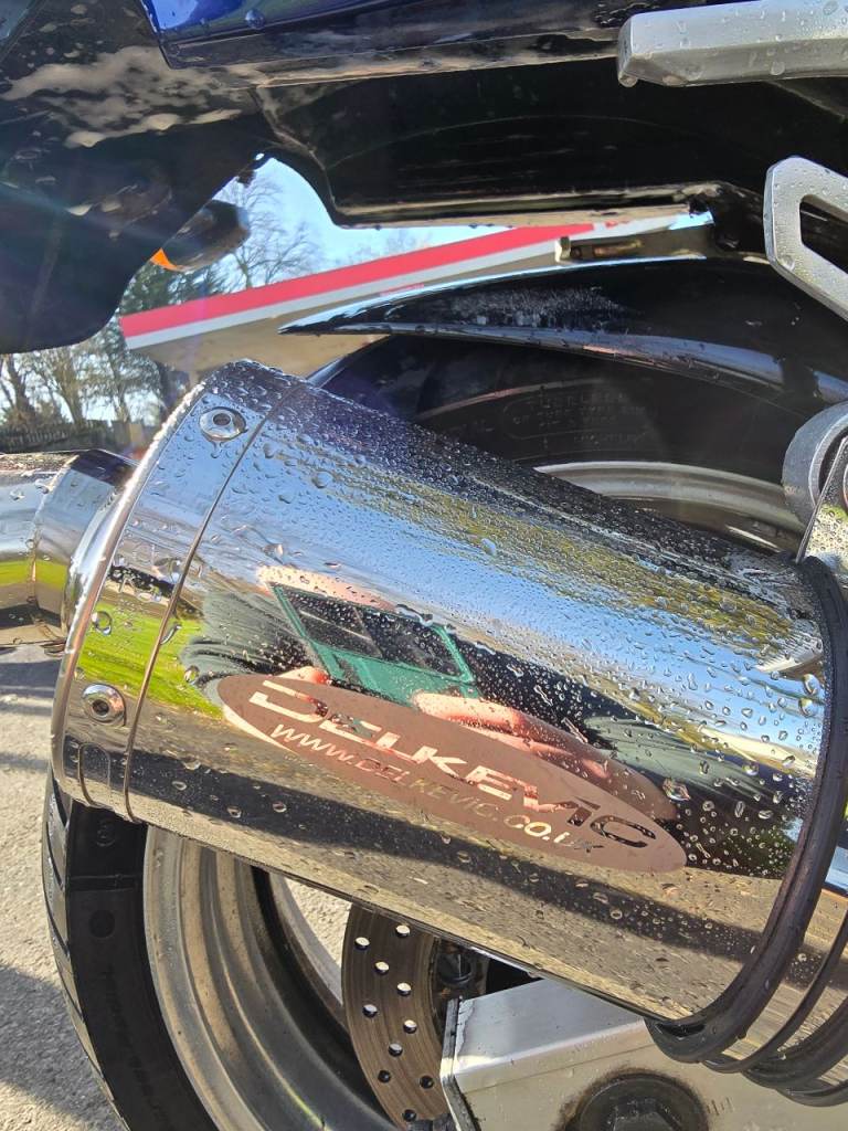 Delkevic stainless steel exhaust, comfort seat, Michelin Pilot Street radial tyres, handle bar raiser. Shock seals done by the last owner. Equipped with alarm with one remote controller.