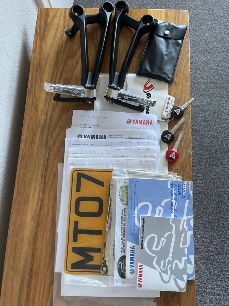 Extras : R&G passenger foot peg blanking plate (foot pegs included), radiator guard, carbon effect tank protectors, Gilles alloy frame inserts, Gilles axle protectors front and rear, genuine Yamaha fly screen, tail tidy, fender extenders.