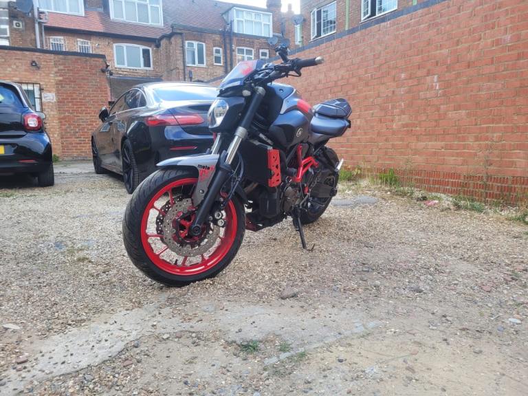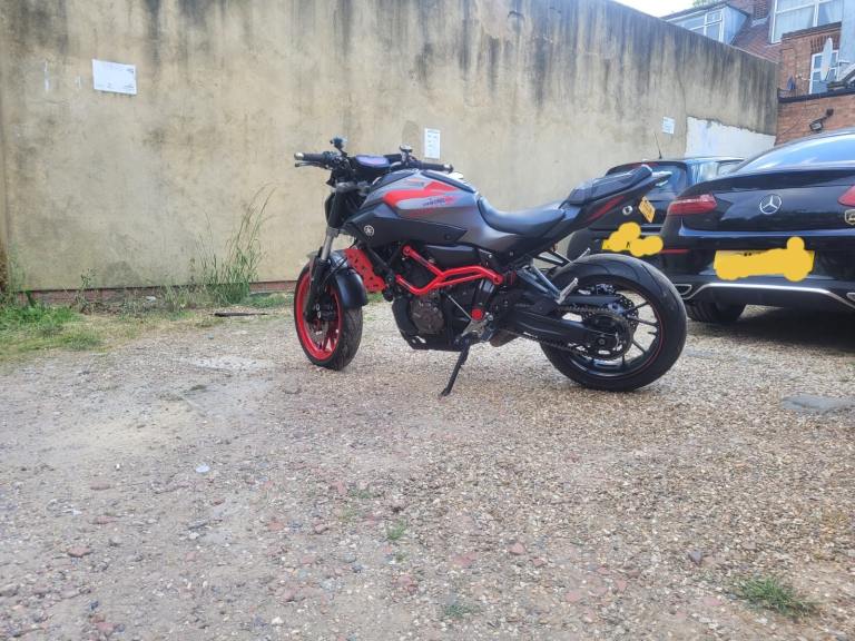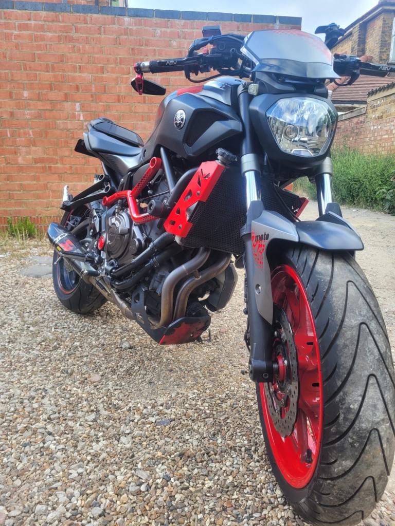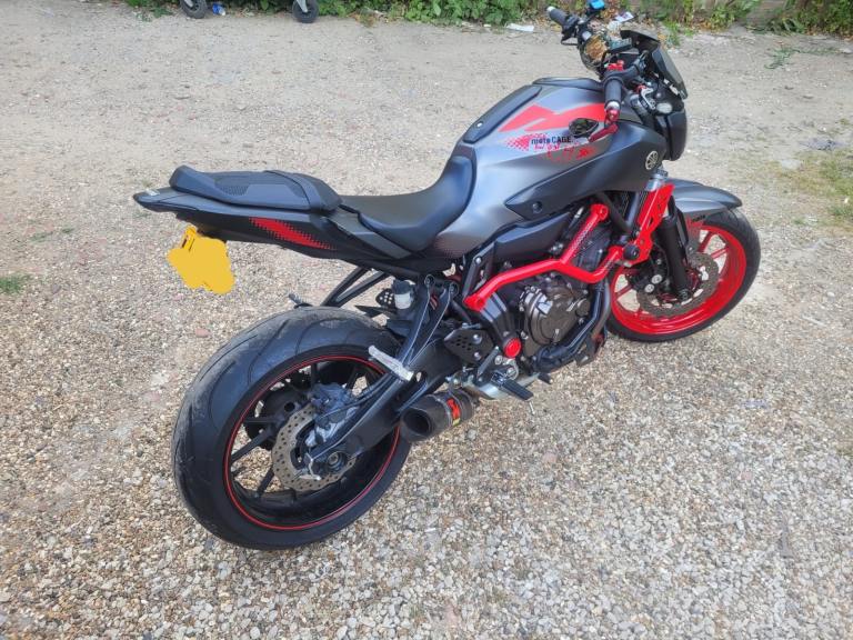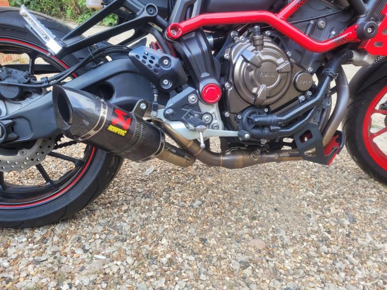 Yamaha mt-07 moto cage edition ABS model stored in doors it has 7642 miles, full service history, 2 previous owners, full Akropic titanium race exhaust, K&N OEM fit high air flow performance air filter, ASV brake and clutch lever, colour cluster (red), from TST Industries full tail tidy number plate bracket plus LED number plate light also LED tail light with integrated turn signals also front flush LED indicator bulb very bright from TST Industries imported from USA, Oxfords heated Grips, Quad Lock phone holding set up very clean bike front disc and pads new also New tire rear and front, rear disc has finish 1 set of pads now has a 2nd new set of pads on the oil hasn't even done 200/300 miles on it but it has been sitting down for 2 yrs will recommend a oil and filter change steering lock is broken due to thieves trying to steal it and a very small scratch on the left side of the tank from then when they kicked the handle bars to break the steering lock other then that you can say the bike is showroom condition