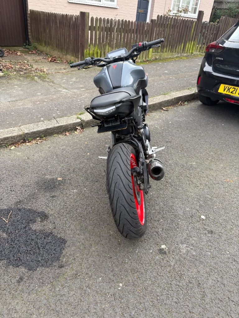 This my my Yamaha my-125 2021 that I am selling as I have my A2 licence now. The bike has less then 10,000 miles and has just been fitted with new chain and sprockets, new set of Michelin tires, new front brake and clutch levers and the bike just had a service done. I bought this bike with one previous owner from a dealership and it’s been kept locked up and covered every night since. The straight pipe exhaust was given to me by my mate who crashed his mt-125 and bought a new exhaust system afterwards, so the dent has been in it since I had got it from him. There are general marks and scratches on the bike from me parking it in my side passage and scratching it here and there on the side. The bike runs perfectly and always has since I had it. The bike has no steering stoppers, I bought the bike with one missing and I then lost the other one during my time with the bike. The bike has a valid mot till mid may and road tax. I’m open to offers, Please message me for any other questions or anything!