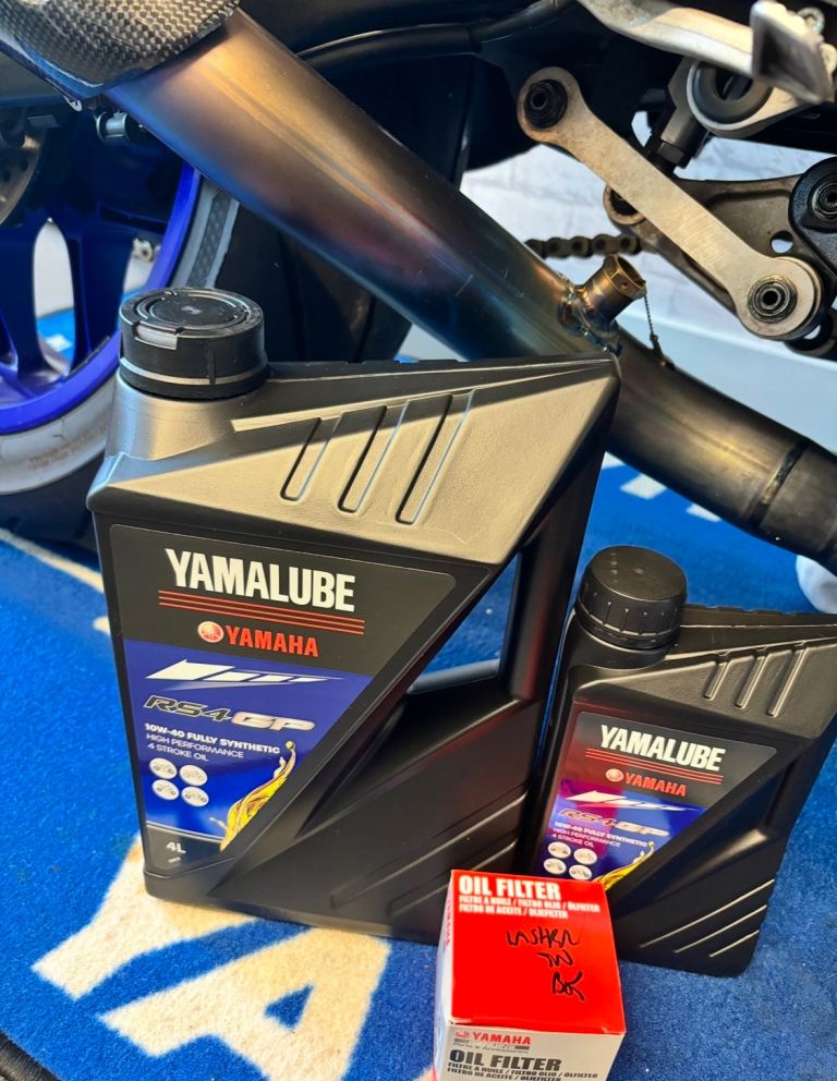 yamalube rs4-gp oil, coolant, motul rbf660 brake fluid, original oil filter, MWR HF filter