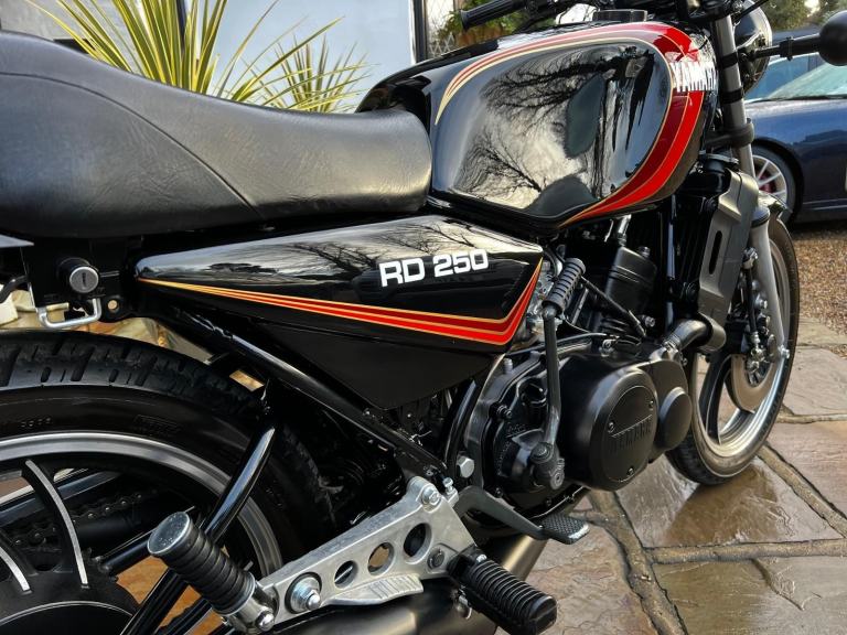 Yamaha RD250 LC 1983 – Matching Numbers | Nut & Bolt Restoration | Stunning Example, , A truly exceptional 1983 Yamaha RD250 LC, presented in outstanding condition and ideal for collectors and enthusiasts alike., , This motorcycle has undergone a total nut and bolt restoration, with no expense spared to retain originality and authenticity. It is a matching numbers example and represents one of the finest surviving RD250 LCs currently available., , Originally imported on 01/04/2022, this bike has covered just 7,297 km (4,533 miles) from new., , Key Features:, • 1983 Yamaha RD250 LC, • Total nut & bolt restoration, • Matching engine & frame numbers, • Imported on 01/04/2022, • Genuine low mileage: 7,297 km / 4,533 miles, • Comes with two keys, • HPI clear, • Registered as a Historic Vehicle, , This bike is in stunning condition and is a real head-turner. It starts and runs beautifully, exactly as these legendary two-strokes should. The engine sounds crisp, the power delivery is sharp, and it rides exactly as an LC should., , This is not just a motorcycle – it’s a proper piece of Yamaha history., , Must be seen to be truly appreciated., , Viewing:, , Viewings are strictly by appointment., Please contact Dennis on [Phone number removed]to arrange a viewing., Black, £8,995