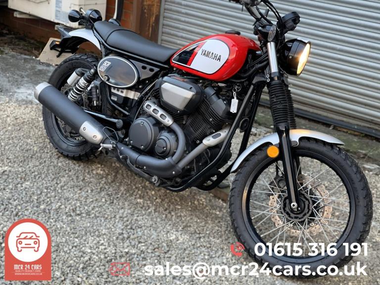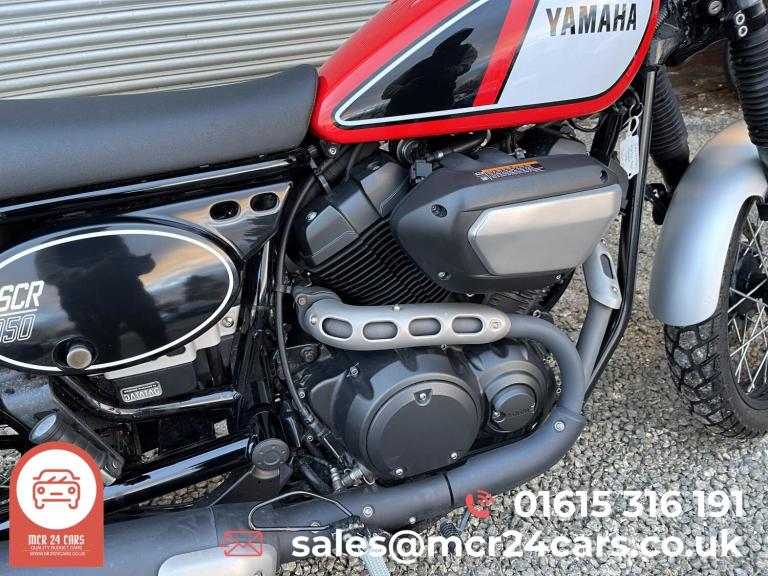 HERE AT MCR24 CARS, WE ARE PLEASED TO PRESENT THIS STUNNING YAMAHA XVS 950 XR-A SCR 950 ABS - LOW MILES Manual Petrol 0.9L Motorbike Key Details: 4,150 Miles 2 Keys HPI Clear Factory White & Red Paintwork ABS Braking System Electric Start Recently Serviced at 3,870, 3,928 & 4,001 miles PX WELCOME WITH CAR The Yamaha SCR 950 perfectly blends classic scrambler styling with modern reliability. Powered by a torquey V-twin engine, it delivers a smooth yet characterful ride, ideal for city cruising or scenic backroad adventures. The upright riding position, wide handlebars, and retro-inspired design including wire-spoked wheels and a flat seat make this bike both comfortable and eye-catching. Free local delivery available Nationwide delivery available (T&Cs apply) Pre-delivery inspection carried out Prepared to a high standard and ready to ride away Call 0161 531 6191 today to arrange a viewing or reserve with just a £100 deposit Open 7 days a week, including weekends We have plenty of similar vehicles in stock , take a look at our other listings for more options! For more pictures and full stock, visit [Website URL removed] Vehicle specification may vary. Please contact us to confirm exact details.