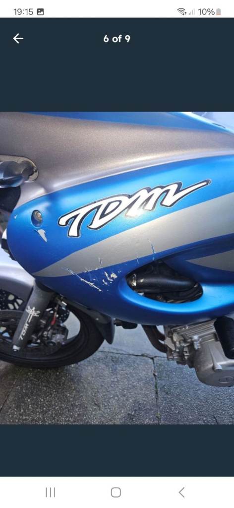 Tdm850 2001. Mot til march. Runs and rides mint. Has a few exras including twin black widdow exhausts. Bar rissers. Oxford heated grip. Uprated braided brake hoses. Led spot lights. Usb sockes. Tail tidy. With 3 difrent size reg plates. Loads ov paper work serviced this year has a small scuff on tank side pannel. Great comftable commuter new bike forces sale no stupid offers