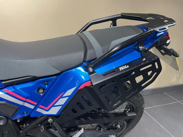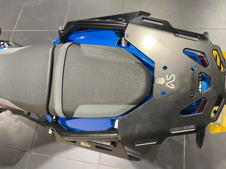 This model has Ohlins steering damper, KYB suspension and Akrapovic exhaust as standard but this example also has Oxford heated grips, SW Motech crash bars, AS Rack, R&G pannier protectors, Eazi Grip knee grips,